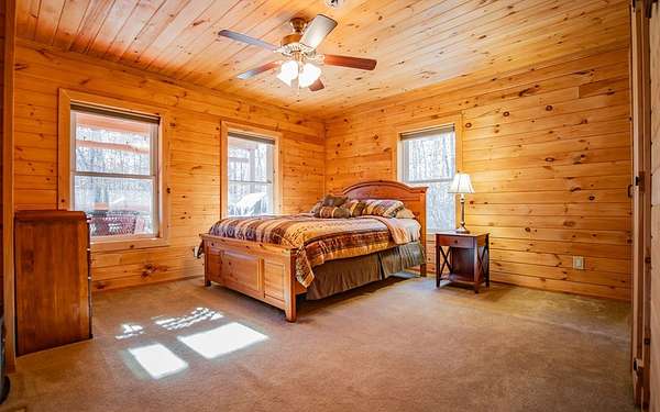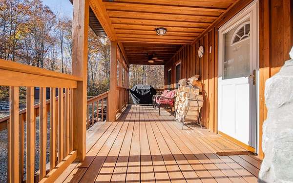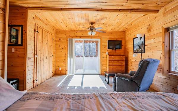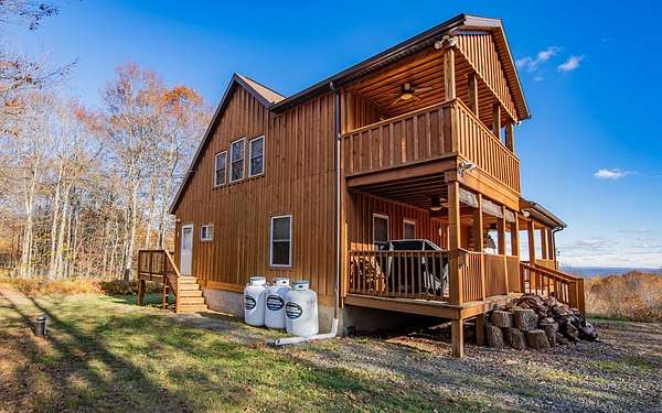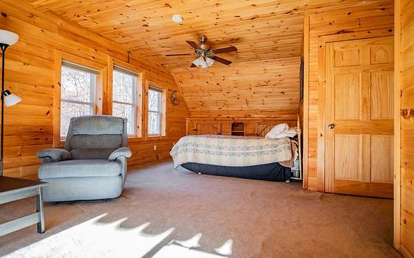 Don't miss out on this beautiful 2BR/2BA cabin situated on 2.721 acres in the FoxGate Subdivision outside Shunk. The cabin highlights an open concept with tongue and groove white pine walls and ceiling throughout. The living room with wood stove insert and dining room share a cathedral ceiling and three sliders leading on to a spacious deck with stunning views. The well-appointed kitchen features a bar with seating. Rounding out the first floor is a nice size bedroom, 3/4 bath and laundry-mudroom. Upstairs is the large primary bedroom with sitting area and covered balcony with two ceiling fans where you can enjoy your coffee while taking in the amazing views, a full bath and loft area. This hunter's paradise with trail access to 24,000+ acres of state game lands can be yours for $389,900. FoxGate has a spring-fed pond and various trails for hiking/four-wheeling throughout the 280 acre development. Don't miss out on this hunter's paradise with trail access to State Game Land #012 offer