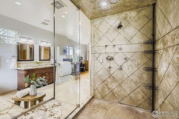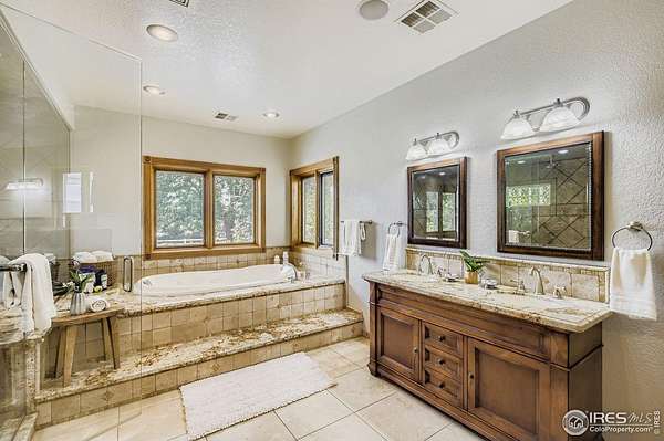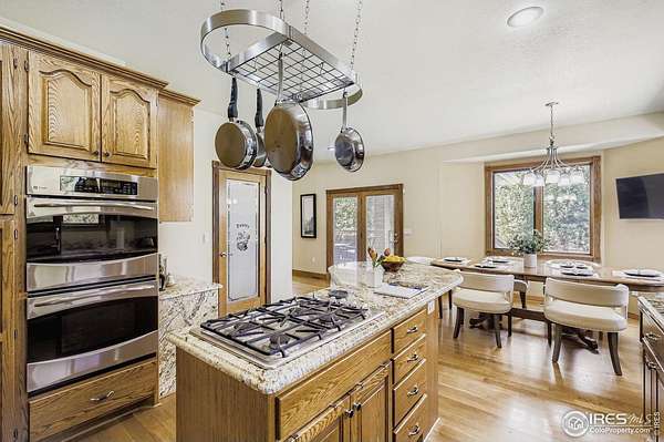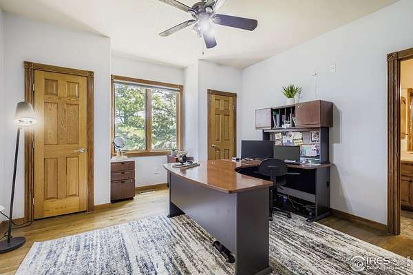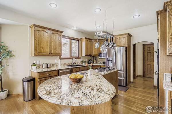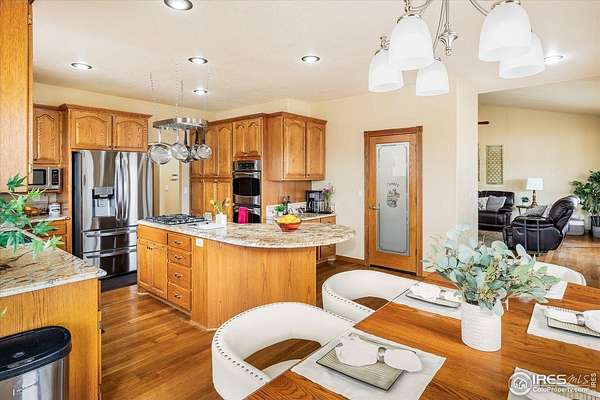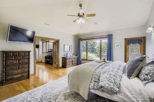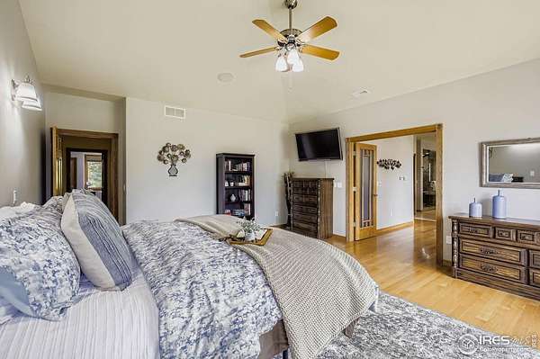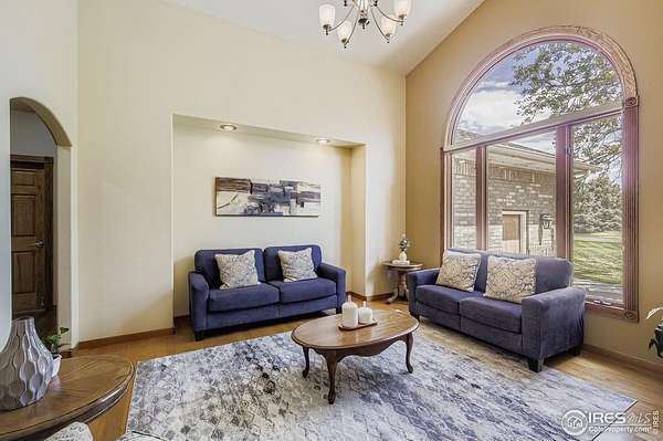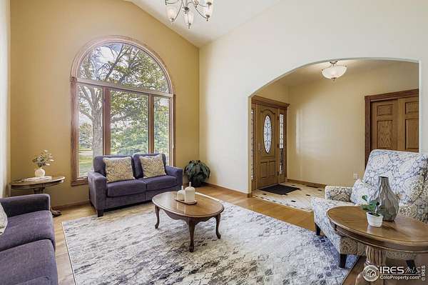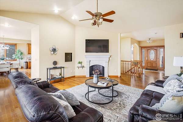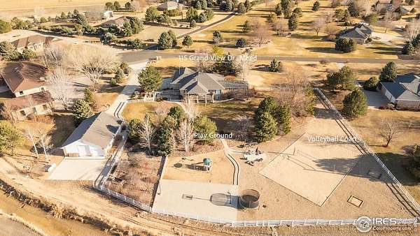 Experience unparalleled luxury in this stunning estate, perfectly situated on two sprawling acres in Grand View Estates. Designed for both comfort and entertainment, this home boasts breathtaking views and exceptional amenities. The luminous formal living room features an expansive arched window, while the open main living area showcases vaulted ceilings and a cozy fireplace. The kitchen is equipped with stainless steel appliances, generous cabinetry, a center island and a walk-in pantry. The main-floor primary suite offers a private retreat with a double-sided fireplace and a spa-like en-suite bath with an oversized walk-in shower, a double vanity and a jetted tub. The finished walkout basement is an entertainer's dream, featuring a spacious rec room with a bar. Experience a stunning oasis with beautifully landscaped gardens that bloom year-round. The property features raised garden beds ideal for home gardening enthusiasts, along with fruit trees. Enjoy a private 9-hole golf course, basketball and volleyball court, a fire pit and a detached, 50' x 40' heated shop with an 12-foot pull-through garage. A fully fenced backyard ensures ultimate privacy and security. Non-potable irrigation water available in the summer.