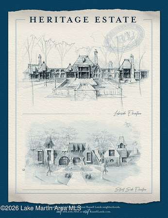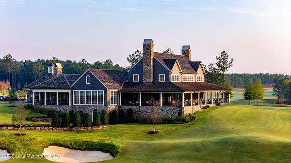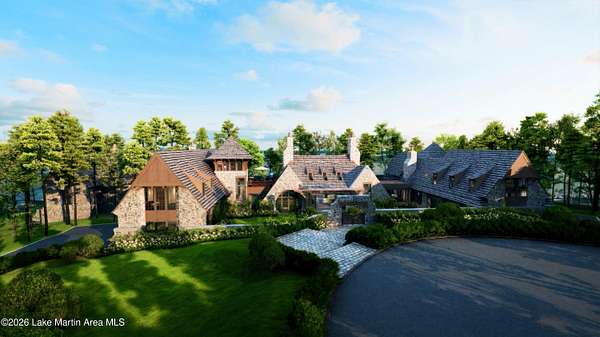 Dramatically set on one of the most remarkable private points on Lake Martin, this extraordinary property within The Heritage, one of the Southeast's premier lake and golf communities, commands nearly 760 feet of pristine shoreline and sweeping water views in nearly every direction. Offered as-is following a change in the owner's plans, construction is already well underway, presenting a rare opportunity to complete what will become one of Lake Martin's most significant waterfront residences. Designed by acclaimed architect Chris Reebals with construction by distinguished builder Francis Bryant Construction, the estate spans approximately 1.78 acres and includes a main residence and carriage house totaling over 10,800 sq. ft. of conditioned space, with more than 17,000 sq. ft. under roof. Architecture & Design: The architecture is intentionally composed to frame the lake from nearly every vantage point. The main residence, envisioned at approximately 8,629 sq. ft., unfolds around expansive gathering spaces oriented toward the water, where walls of steel doors and windows open to terraces and outdoor living areas that seamlessly connect interior and landscape. Plans include five bedrooms, six full baths, and three half baths, anchored by a dramatic great room with adjoining fireside lounge and an indoor-outdoor living room overlooking the lake. Materials & Craftsmanship: A refined selection of materials establishes the home's timeless lakefront character. Natural stone masonry and a cedar shake roof create an enduring exterior presence, while interiors introduce Taj Mahal quartzite, soapstone surfaces, pecky cypress millwork, and warm brass and bronze finishes throughout the residence. The private primary wing is envisioned as a retreat of its own, incorporating a dedicated office, fitness room, sauna, screened porch, and a rooftop terrace overlooking the water. Additional gathering spaces include a theater lounge, game room, wine cellar, safe room, and multiple fireplaces, along with a second rooftop terrace positioned to capture expansive sunset views across the lake. Lakefront Living: Outdoor living fully embraces the rare point setting. Plans include a lakeside pavilion, outdoor kitchen, covered dining and lounge areas, and a dramatic wraparound infinity pool and spa positioned to capture nearly 180-degree water views. The shoreline is already improved with a crafted stone seawall and two private docks, including a speed-lift-equipped primary dock with year-round deep water. The carriage house, totaling approximately 2,227 sq. ft., provides a private guest retreat with its own kitchen, fireside living room, two bedrooms, bunk room, three full baths, and one half bath. Community & Lifestyle: Residents of The Heritage enjoy 24-hour security and access to the Benjamin Lake Club, featuring a lakefront clubhouse, resort-style pool complex, fitness center, tennis and pickleball courts, beach, and community docks. Ownership also provides eligibility to apply for membership at Wicker Point Golf Club, the Coore & Crenshaw-designed course recently ranked among Alabama's top courses by Golf Digest and GOLF Magazine. With construction already more than 50% complete, the next owner is positioned to shape the final vision and bring to completion what will stand among the defining waterfront estates in the history of Lake Martin.