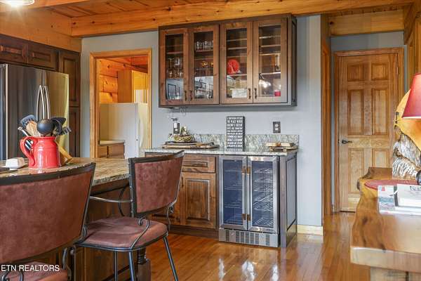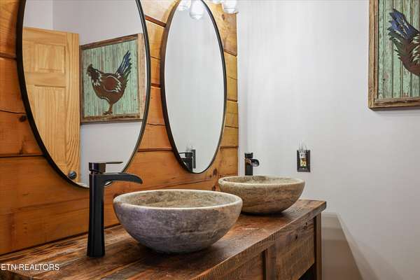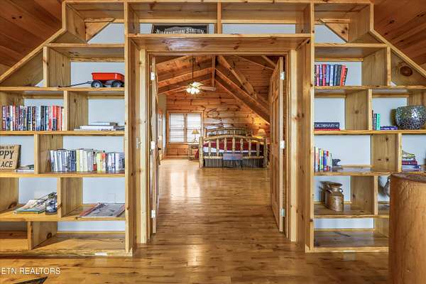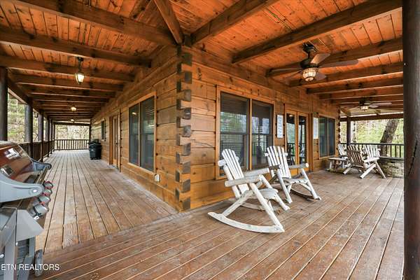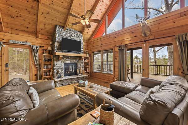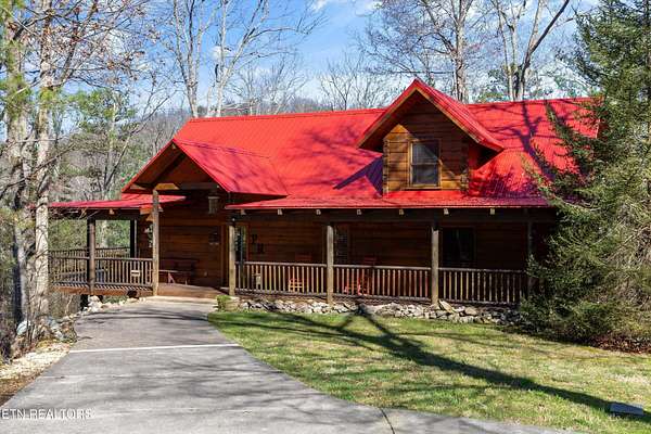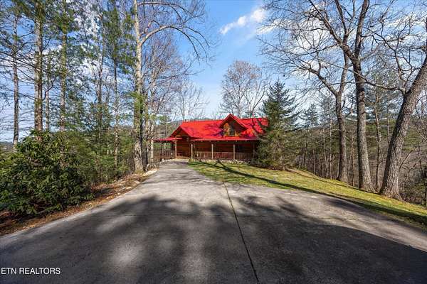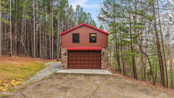 Tucked away on nearly six private acres just off Highway 68, this updated mountain retreat offers a blend of rustic character, thoughtful upgrades, and peaceful country living, all just minutes from downtown Tellico Plains and the Cherokee National Forest. Inside, the main living area is centered around a floor-to-ceiling stone fireplace, with built-in bookcases adding character and large windows bringing in natural light and views of the surrounding landscape. The kitchen is designed for both everyday living and entertaining, featuring a large granite island, custom cabinetry, stainless steel appliances, and a built-in wine and beverage cooler. The main level includes two bedrooms and a fully renovated bathroom with heated tile floors, a custom stone-tile shower with a glass sliding door, and a stone vessel sink. A spacious laundry room on this level provides convenient access to the outdoor deck and wraparound porch. Upstairs, a sitting area creates a flexible space for a reading nook or office and leads into a private bedroom suite with a renovated bathroom featuring heated floors, custom cabinetry, and dual stone vessel sinks. The exterior offers a full wraparound porch, providing space to take in the views from multiple angles, whether for morning coffee or evening relaxation. Recent updates include a metal roof, spray foam insulation in the walls and ceiling, and a Wi-Fi-controlled HVAC system. The property also includes a detached garage with space for two vehicles, along with additional room for storage, equipment, or recreational use. Above the garage, a finished living space with a full bathroom offers flexibility for a guest suite, office, or studio. Private and well-positioned, 115 Martin Road offers the opportunity to enjoy mountain living with modern updates on nearly six acres in Tellico Plains, close to shopping, dining, and a variety of outdoor adventures. This home provides great potential for rental income for VRBO and has had great success over the past 10 years due to its proximity to the mountains, rivers, and the Cherokee National Forest where fishing, kayaking, canoeing, rafting, and hiking are extremely popular. The main house totals 2,100 square feet (1,344 on the main level and 756 upstairs) and includes three bedrooms and two bathrooms, while the detached 768-square-foot garage/studio features one bedroom and one bathroom.