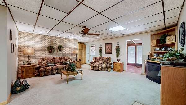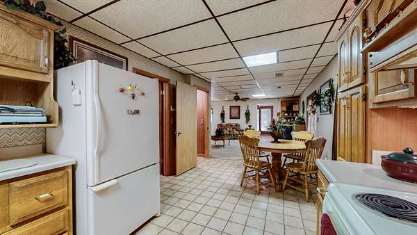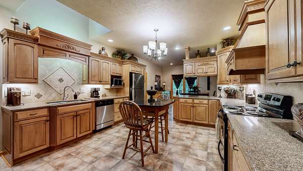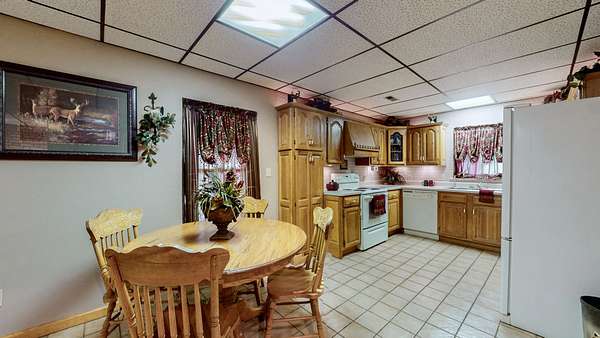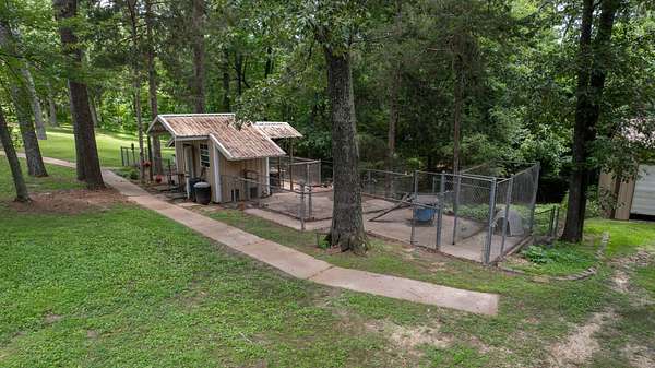 Secluded Paradise minutes from beautiful Kentucky Lake features approx. 20.8 ac +/-, immaculate 4 bedroom 3 bath home, finished basement, 9 ft, ceilings on main level of home with beautiful stone gas fireplace. Custom Kitchen on main level with granite counter tops, tile backsplash, eating bar, pantry area and ample cabinets with pull outs. Basement has additional full kitchen and dinette area off den area. 40x30 Metal building with propane tank & heat, finished 15x14 den featuring wood interior walls, stone & window unit. Add'l 30x24 Metal outbuilding with kitchen, oven, stove top, window unit, ductless h/c unit, flat screen tv, half bath, electric hot water tank, wood stove, roll up door, additional garage bay space & storage under, Additional Equipment shed located behind w/ even more storage space. Expansive dog runs, fenced area and dog shed/house. Mostly Locust Dr is a private Drive & will convey with sale. Neighbor to have easement to 160 Mostly Locust Dr.