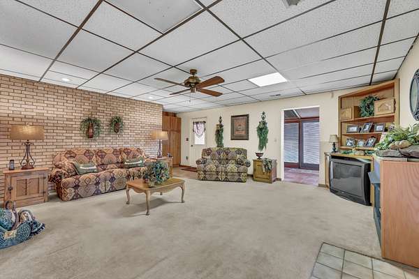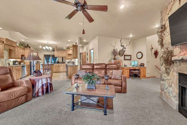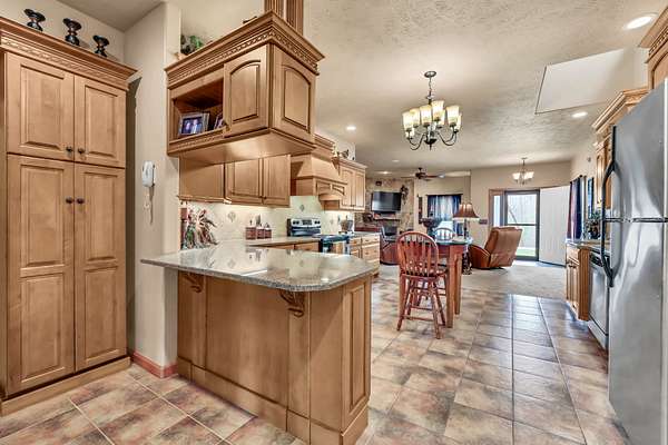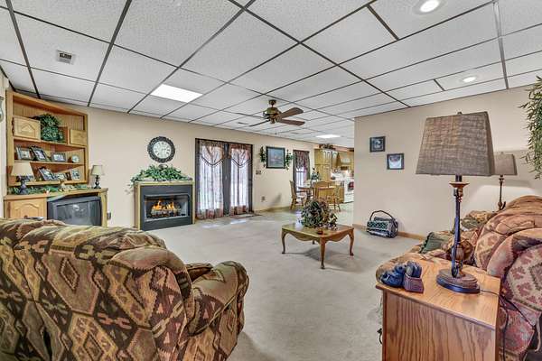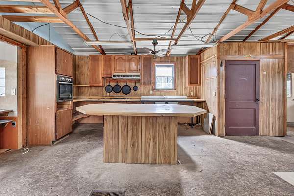 Enjoy peace and privacy on 20.8 secluded acres just minutes from Kentucky Lake. This well cared for home offers 4 bedrooms 3 full baths and a partially finished basement, providing plenty of space for family and guests. Custom designed main level kitchen complete with granite countertops, stylish tile backsplash, eating bar, pantry space, and an abundance of cabinets with pull-out features for maximum functionality. Inviting living room showcases a gorgeous stone gas fireplace as the centerpiece. Ideal for multi-generational living, the basement boasts a full kitchen, dinette area off the den and a full bath. Property includes a 40x30 metal building with propane heat and finished office space, along with a 30x24 outbuilding featuring a full kitchen, oven, stove top, a/c unit, half bath w/electric water heater, wood stove and roll up door. Perfect for pets, featuring expansive dog runs, a fenced area for dog house. Mostly Locust is a private drive, easement to 160 Mostly Locust Dr will convey.
