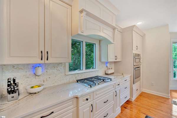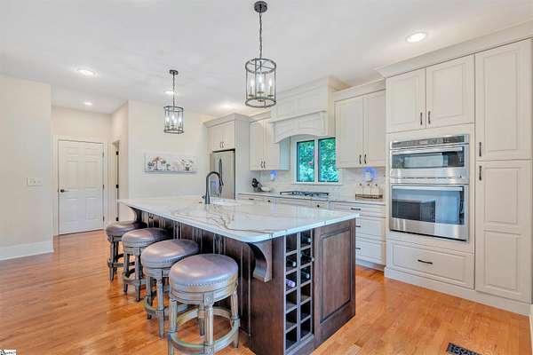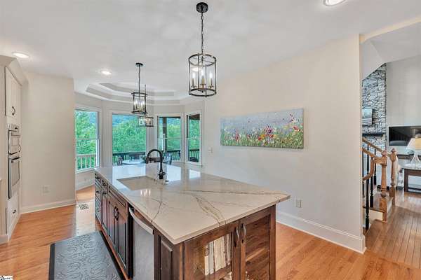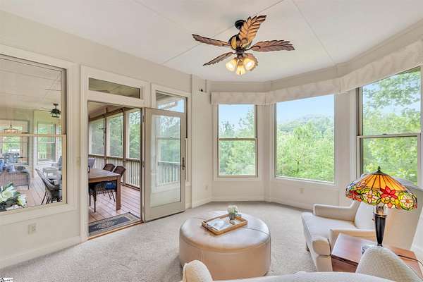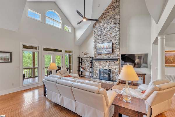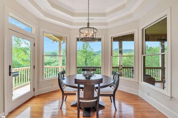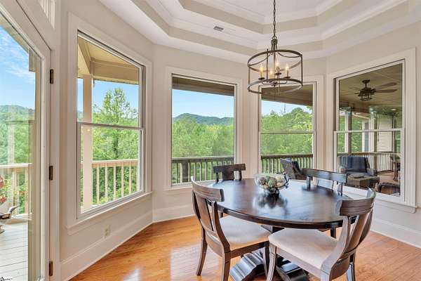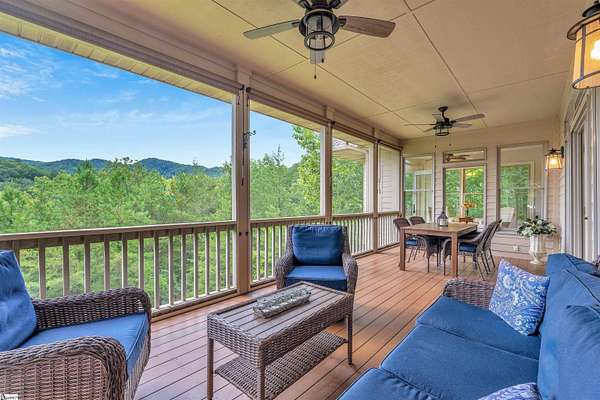 The mountains are calling...escape, relax, and soak in the beauty of the peaceful mountain views at 115 Mountain Summit Road. -- Tucked on 2.3 wooded acres in the golf and fitness community of Cliffs Valley, it is convenient to all the Club amenities including the Wellness/Fitness Center, Tennis and Pickleball Courts, Swimming Pools, Hiking Trails, Club House and Golf Course. -- This updated, private 4 bedroom 3 1/2 bath home has a comfortable open flowing floor plan designed with abundant windows to maximize natural light and capture the dynamic beauty of nature throughout the changing seasons. -- A private circular drive with ample parking leads to the rocking chair front porch and into the Foyer and Great Room with soaring ceilings, a stone fireplace and doors leading to outdoor living on the large, screened porch with mountain views. -- Just off the Foyer and flowing into the Great Room, the Dining Room, is also convenient to the recently renovated Chef's Kitchen, fully equipped with custom Cabinets, new appliances, a huge central island with quartz counters, sink, storage and seating, a walk-in Pantry, and a Breakfast Nook with mountain views and access to the Grilling Deck connected to the screened porch. -- The private, main level Primary Suite has two walk-in closets, an updated En-Suite spa with large soaking tub, quartz counters, water closet and an oversized shower. French doors lead from the Primary Suite to the All-Season Room with mountain views and access to the screened porch. Also located on the main level are a Den/Office with French Doors, a Powder Room, Laundry Room and access to the oversized 2 car, side entrance Garage. Tiered stairs lead to the second floor with a large Guest Room and a full Bathroom and a Loft/Flex Room currently serving as a second office and Yoga Room/Gym. -- The Terrace Level of the Home has 2 additional Bedrooms, a Full Bath, a central Rec Room with access to a large, covered porch leading to the back yard. A large unfinished storage room is also located on this level. -- 115 Mountain Summit Road is an easy commute to GSP and AVL Airports, downtowns Greenville and Travelers Rest, SC as well as Tryon, Henderson and Asheville, NC. -- A Cliffs Membership with access to all 7 Clubs is available as a separate purchase.