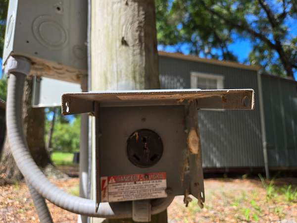Set up with two full RV hookups and an active RV permit, this property is immediately usable. A 30' x 8' screened and covered deck offers a shaded porch space for your RV--perfect for outdoor dining or relaxing under the oaks. The 200 AMP electric service, well, and septic system are already in place, and high-speed fiber internet is available, making it easy to stay connected while enjoying rural tranquility.
