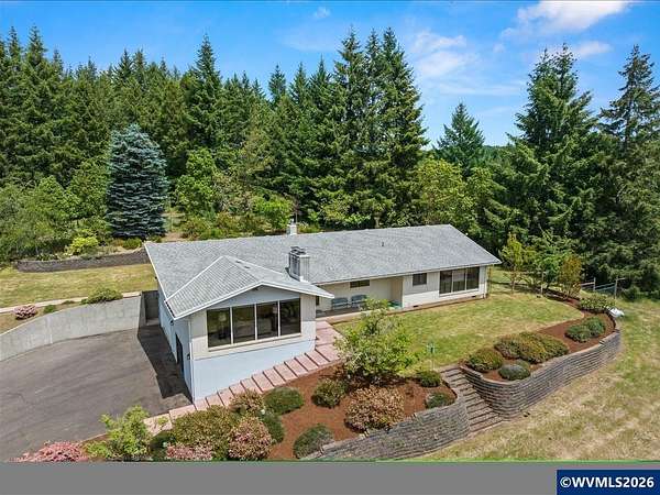 Est $6,848/moIncredible opportunity w/ this beautifully updated home on 11.8 acres in North Corvallis! Well built home w/custom features, large living spaces, walk-in pantry, bonus rec room & much more! Acreage features large horse arena, area for livestock & fenced pasture, a private fully fenced forest & large concrete court for pickleball, tennis or extra play area! Desirable location only minutes from town & easy access to hiking/mtn biking at Peavy Arboretum! Zoning allows for subdividing into extra buildable lots!