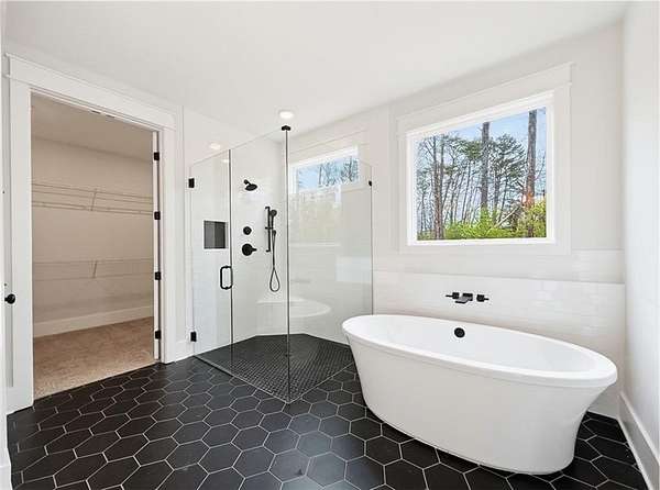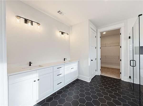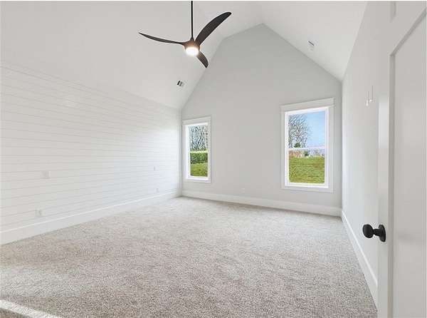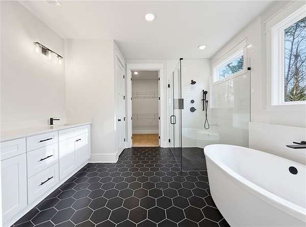 - Beamed Ceilings, Disappearing Attic Stairs, Double Vanity, High Ceilings 10 ft Main, Low Flow Plumbing Fixtures, Recessed Lighting, Tray Ceiling(s), Vaulted Ceiling(s), Walk-In Closet(s)