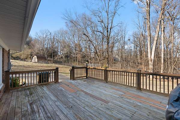 Beautifully Maintained One-Owner All Brick ranch offering 3 bedrooms and 2 Baths, situated on a 1.5-acre lot at the end of a quiet, Private Cul-de-sac Conveniently located between Dickson & Burns. Filled with natural light, highlighted by large picture windows overlooking the front yard. The Classic floor plan features formal living & dining rooms, plus a spacious den with Fireplace. Perfect for everyday living & entertaining. The 18x11 Primary suite provides comfort and privacy, the two large guest bedrooms share a Jack-and-Jill bathroom. Abundant closet space throughout offers plenty of storage. Enjoy outdoor living on the large deck, overlooking a large yard, ideal for relaxing or gathering. Additional features include a circular paved driveway, Natural gas hook-up for a grill. The Expansive Basement, plumbed for a bathroom, offers excellent potential for an in-law suite, multi-generational living space, recreation area, or future expansion, along with Storage Spaces and a one Car Garage. All of this in a Great Location convenient for commuting to Nashville and Franklin!