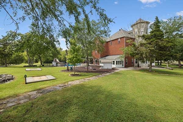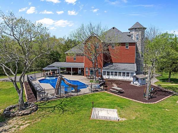 LOCATION!!! WILSON COUNTY RARE FIND! This AMAZING HOME is like being on vacation every day, and "oh the memories you will make here!" This 4 level 7,385 Sq Ft, home is nestled on 1.8 private acres & has something for everyone, and somewhere for everything! 8 of the rooms are set up as Bedrooms (Septic is 3), 7+ Baths, a Theatre Room, a Sunroom, Game Room (Could be Formal Dining), a Workout Room, Eat-in Cooks Dream Kitchen, & a Special 4th Floor Hideaway Space that even includes a 1/2 Bath. Outside is an unrivaled Adult & Child's Playground. For relaxing & entertaining there are Covered Front Porches on 3 levels, a Sparkling Pool w/ a Turbo Twister Water Slide, Oversized Covered Back Patio, Firepit, Horseshoes, Pickleball & Basketball Courts, Children's Play Area including a Playhouse, Swingset, & Hopscotch, in a bed of "soft landing" rubber mulch. In addition to the Main House is a 960 Sq Ft Detached Full Apartment, which could be used to generate rental income, PLUS a 30'x60' Heated & Air Conditioned Workshop w/ Full Electric, Water & its own 1/2 Bath. There are 4 HVAC units for the main house & there's even a connection/transfer switch set up for a generator. The Sellers thought of Literally EVERYTHING one could want in this ONE-OF-A-Kind home. Enjoy it as your own private retreat, or invite family & friends to partake in all this wonderful property has to offer. All Movie Theatre Seats, Washer & Dryer in Main House & Apartment, All Refrigerators, Playhouse, Swingset, & Log Pile Remain.