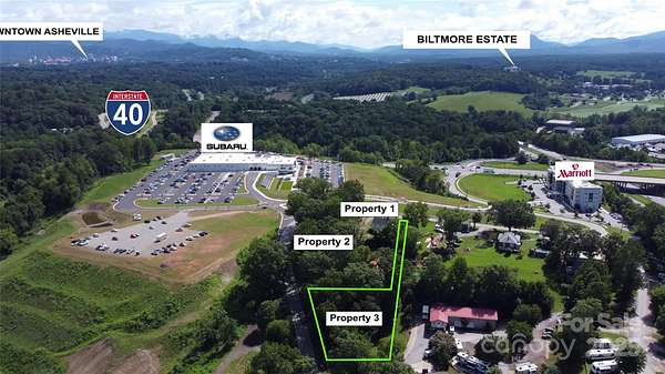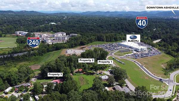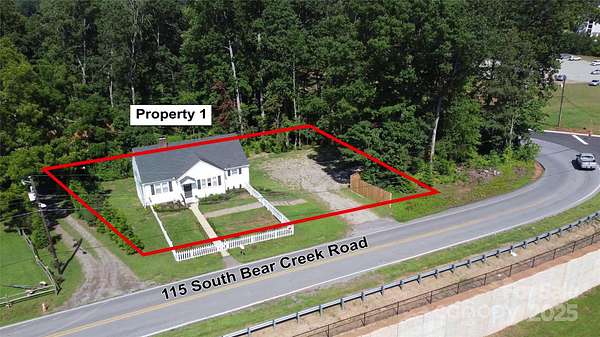 Prime Commercial Opportunity located just off a high-visibility corridor in close proximity to the crossroads of I-26 and I-40. This 2-acre property offers excellent exposure and accessibility. Directly across from the new Subaru dealership, the site includes a versatile commercial house/office structure and is divided into three separate lots, allowing flexibility for development or investment. Zoned Regional Business. The land features a combination of level areas and gentle slopes, providing multiple buildable options with year-round mountain views. City water and sewer are available, streamlining the path for redevelopment or expansion. With its strategic location, strong traffic counts, and proximity to major interstates and established businesses, 115 Bear Creek Rd. is ideal for professional offices, lay down yard for equipment or redevelopment. The house is rented for $1600 through April of 2026.
