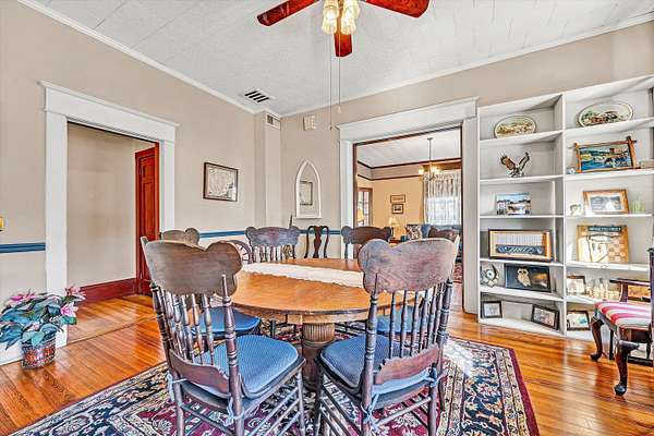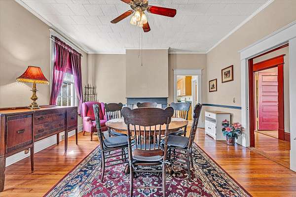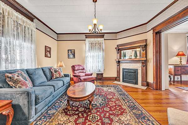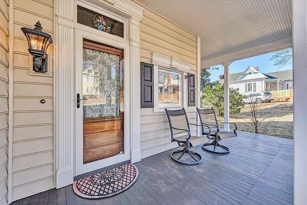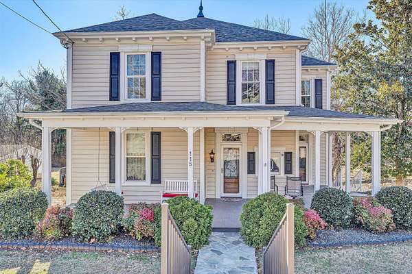 OPEN HOUSE SUNDAY Feb 15th 2-4 pm! Longing for a charming 2-story Victorian home on a large lot with a fountain and a waterfall? The Primary bedroom can be entry level. 2018: New Architectural Roof, Decorative Spire, New Gutters, downspouts and Gutter guards. 2019: New shutters, moldings and siding! Refinished Heart-of-Pine Floors and Oak Staircase. Insulated PVC Beadboard Ceilings over Deck and Porches. 2021: A Heat pump w/ gas backup was installed. The Quiet tilt-in thermal windows, main floor laundry, decorative fireplaces and mantels, and a Gas-fired Stove w/remote control are features you will love! Save time for swinging on the lower deck this spring. Public water & sewer. All Appliances convey. Lots of storage in the store room closet, shed and walkout basement area. Come see