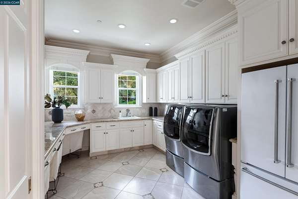 - Dishwasher, Double Oven, Dryer, Gas Range, Microwave, Oven, Refrigerator, Washer