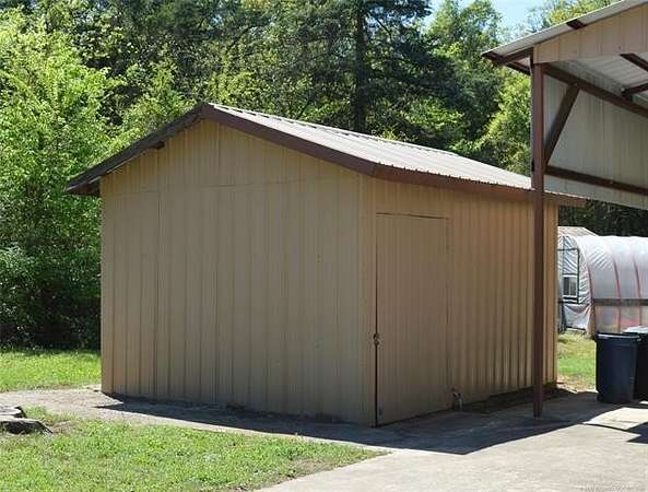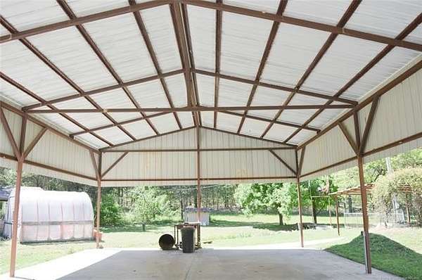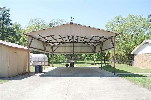 So much more than just a house! This property has it all, including covered parking, equipment shed, greenhouse, storage shed, cellar, creek with private bridge, supplemental water source, fenced garden, two living areas, pet fencing, and more! Near the small town of Rattan, this lovely home provides both comfort and convenience. The interior of the home has been freshly cleaned and prepped for sale. The whole interior sports a new coat of paint, brightening the space. The home has electric heat and air for comfortable living, but the main living area of the home has an Ashley wood stove, for keeping supplemental heat available even if the electricity goes out. When Oklahoma weather hits, you can retreat down the covered sidewalk, to the in-ground storm cellar, located only a few steps from the house. Inside the house, two guest bedrooms share a full bath with walk in shower. The primary bedroom has a half bath attached. A second living area, just off the kitchen, has an exterior entry and built in shelves. This would make a great home office space! The galley style kitchen and dining area flow seamlessly together. The laundry room has ample space for a full-size washer/dryer set. New carpet has just been installed in the home. This is a clean slate for buyers to customize to their liking. The home is accompanied by a very large RV height carport, complete with water and electric access. It is made of steel framing, concrete floor, and metal roof. A covered walkway leads to the full-length back porch. The yard is split up into several zones for different uses. There is a fence around the porch, a shelter and yard for a pet, the fenced garden, an open, grassy area for wildlife along the creek, and fencing around the side yard as well. The home has rural water but an onsite well is used for watering the yard and garden. Two large culverts create a crossing for equipment to easily maintain the property. There's so much more to this property, than just a house!
