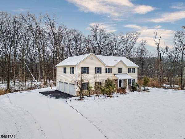 Set at the end of a quiet cul-de-sac on 2.7 level acres, this custom Colonial offers privacy, space, and timeless design with an impressive long-driveway (newly paved) approach. A welcoming rocking-chair front porch leads into a dramatic two-story entry, where beautiful lipped hardwood floors flow throughout the home. Formal living and dining rooms transition seamlessly into an open-concept heart of the home featuring a well-appointed kitchen with stainless steel appliances, counter seating, and a dedicated dining area with access to the backyard patio. The kitchen opens to a sun-filled family room anchored by a wood-burning fireplace, perfect for everyday living and entertaining. A functional mudroom, powder room, and direct entry to the three-car garage complete the main level. Upstairs, retreat to the expansive 575 sq ft primary suite with tray ceiling, two walk-in closets, and a spa-like bath with dual vanity. An additional en-suite bedroom, three generously sized bedrooms, a full bath and laundry center complete this level. All closets are custom outfitted for optimal organization. The walk-out lower level offers high ceilings and endless potential for future living space. Enjoy all public utilities, fruit-bearing trees including fig and Asian pear, and an established organic garden. Ideally located close to the train and local shops, this exceptional property offers the perfect blend of tranquility, convenience, and lifestyle an opportunity not to be missed.