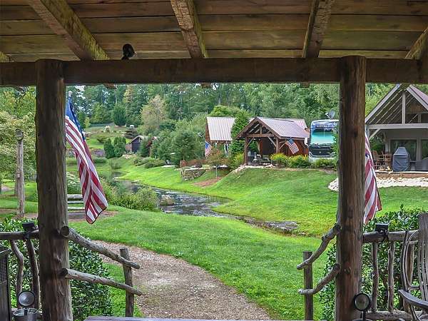 Wid Flower Creek Luxury Motor Coach Lot for Sale. Description: 115 Wild Flower Creek, Scaly Mountain, NC 28775 Discover the epitome of luxury and tranquility at Lot 115 in the prestigious Wildflower Creek Motor Coach Resort, located at 115 Wild Flower Creek, Scaly Mountain, NC 28775. This premium lakefront lot offers a breathtaking view of a stunning water feature, creating a serene backdrop for your motor coach retreat. The lot features a spacious 50' concrete pad, perfect for accommodating your Class A motor coach, and is complemented by low-maintenance artificial turf, ensuring a pristine, hassle-free lawn year-round. Nestled amidst flowing creeks and the awe-inspiring landscapes of Western North Carolina, this lot is situated at an elevation of 3,600 feet, where summer highs average a cool 82 degrees F-ideal for those seeking respite from warmer climates. Wildflower Creek Motor Coach Resort is a gated, luxury community designed for discerning travelers, offering a peaceful and beautifully curated environment to unwind and embrace the mountain lifestyle. Whether you're looking for a seasonal escape or a permanent haven, Lot 115 is your gateway to an unparalleled motor coach experience in the heart of Scaly Mountain.