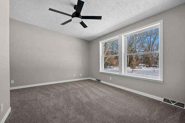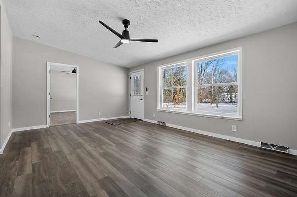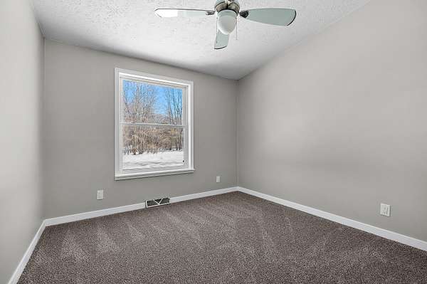 Tucked away off the road on 3 acres, this newly remodeled home is ready for new owners! New roof, new windows, fresh paint, flooring and updated baths make this home feel brand new. The primary suite is large with 2 separate vanities and a shower. The other two bedrooms are good sized and have a newly remodeled shared bath nearby. The basement is ready to be finished, and there is even a room framed in with an egress window for a potential 4th bedroom. There is a large fenced area for your 4 legged friends, a chicken coop, and greenhouse. You could have a great little homestead! The house is plumbed for a wood boiler system, though the wood boiler itself needs to be replaced. New well pump installed recently.