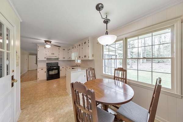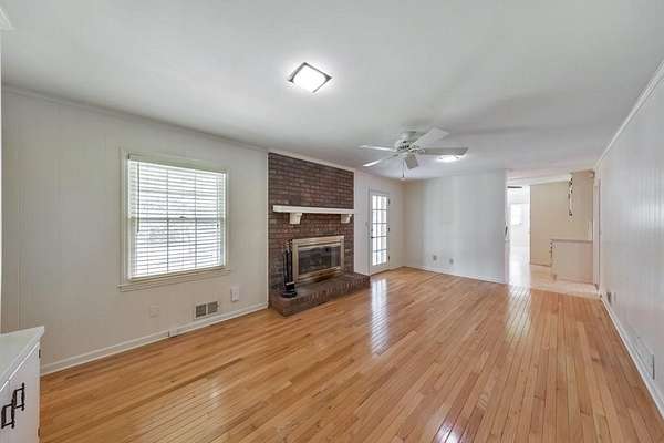 Nestled on a peaceful 2.4-acre corner lot, this charming 3 bedroom / 2 bathroom ranch offers privacy, space, and endless potential. With solid bones and a functional layout, this home is the perfect opportunity to add your personal touches and transform it into your dream home. A welcoming rocking chair front porch invites you inside to a cozy living room that flows seamlessly into the fireside family room featuring built-in bookshelves. The spacious kitchen offers white cabinetry, updated appliances, and a bright breakfast room, along with a conveniently located laundry room just off the kitchen. The well-sized primary suite includes an ensuite bathroom with a shower/tub combo, while two generously sized secondary bedrooms share a Jack and Jill bathroom. The unfinished basement adds incredible flexibility with a second functional kitchen, a 1-car garage door, and plenty of space ready for customization-ideal for a workshop, additional living space, or income potential. Enjoy the serene surroundings from the glass-enclosed sun porch overlooking the expansive backyard. Additional features include a detached carport, storage shed, attached 2-car garage, and a basement-level 1-car garage. Located in the desirable Harrison High School district, this home offers a private, tucked-away feel while still being conveniently close to major roadways, shopping, and dining. A rare opportunity to create something truly special on beautiful acreage!