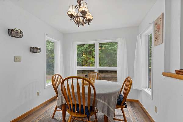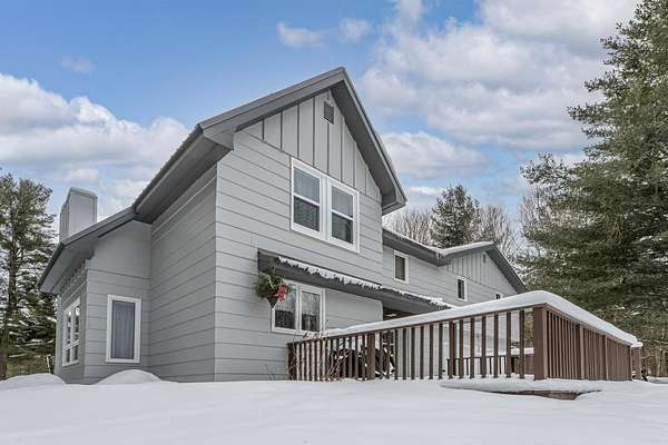 This Northwoods gem is packed with possibilities! Not only does the main home offer three bedrooms, 1.5 baths, and an open-concept living space beautifully redone with new flooring, windows, carpet, and fresh paint, but it also INCLUDES a fully equipped 1 bed/1 bath apartment with its own entrance, wood-burning fireplace, and balcony - perfect for guests, extended family, or rental income. A large mudroom and a three-season room overlook the spacious 2.53-acre yard where deer and other wildlife wander freely. The attached heated 2-car garage with extra storage makes room for all your toys, and the cherry on top? You're less than 1,000 feet from the public boat landing to Big Lake on the Three Lakes Chain - Northwoods fun and adventure are right at your fingertips!
