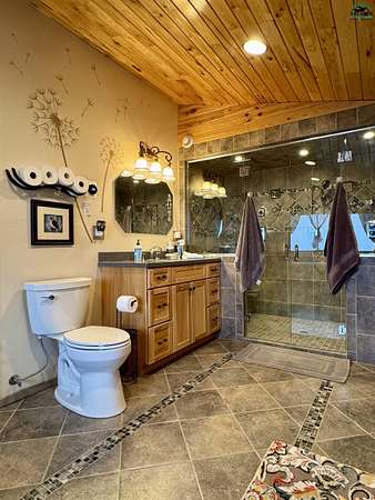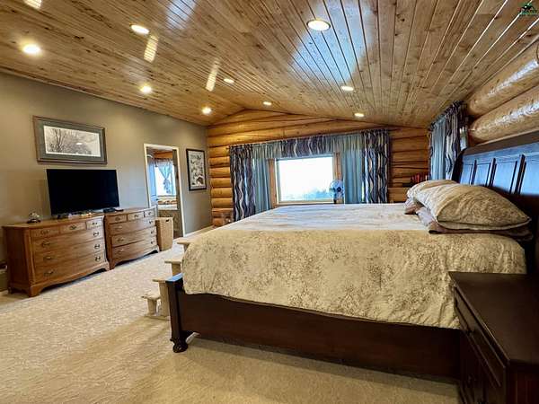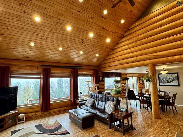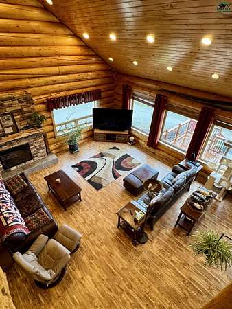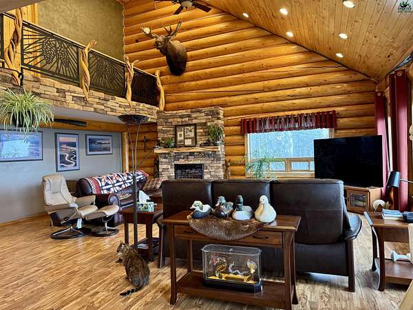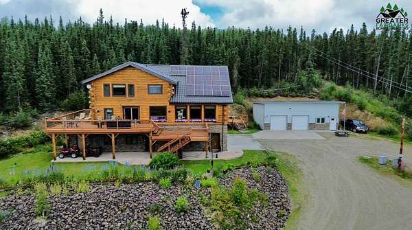 The word stunning isn't strong enough when describing this home! Are you looking for an amazing kitchen full of the best of the best? We've got that. How about a master bedroom so large with a closet for the ages and a master bathroom you could literally throw a party in. Yes, we've got that. I think you get the point, but let me tell you more. This smart home has a location that its not just a view, its a way of life. Perched high on the hill, no hauling water as this home has a well! There are multiple living areas, vaulted ceilings, grand bathrooms throughout the home, the list goes on and on. My favorite part, not only does this home have a three car attached garage, there is an additional three car plus detached shop with a lift for your toys already in place! The log work of the home is tremendous, this home was built above and beyond and even has solar panels to help offset electric costs. This Alaska dream is ready for you!
