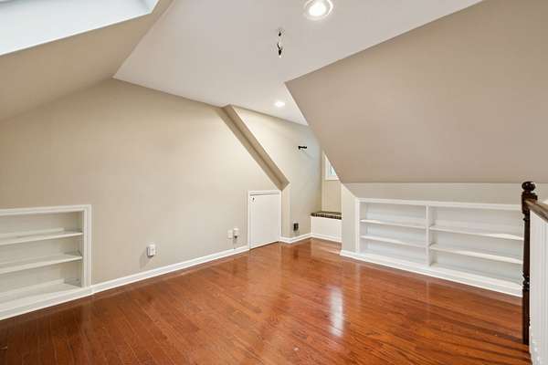 The main-level owner's suite includes a remodeled marble ensuite with stand-alone tub, walk-in glass shower, and custom closet. Upstairs offers two additional owner-style suites, a vaulted family room (15x22), a finished third-floor hobby/playroom (15x6), and a walk-in attic. Above the garage is a 15x11 bonus room with a new HVAC split unit (not included in total square footage).