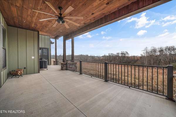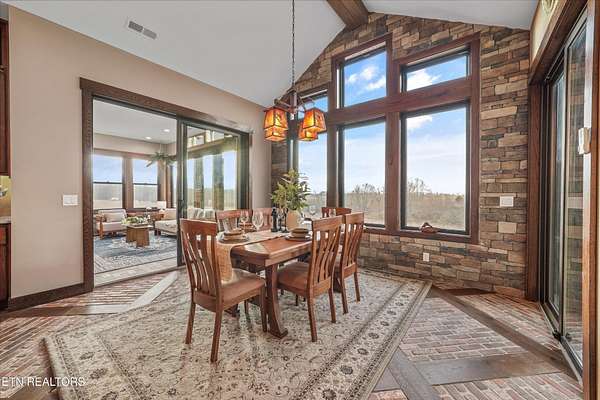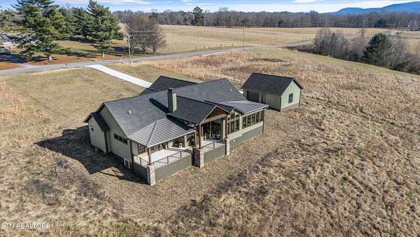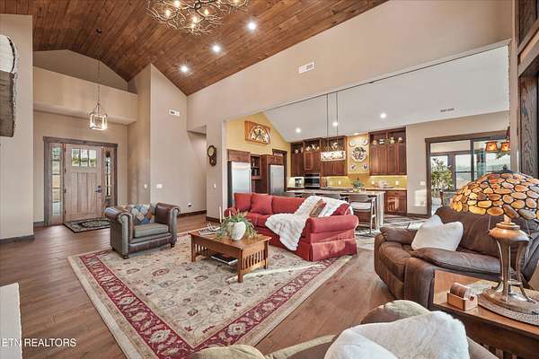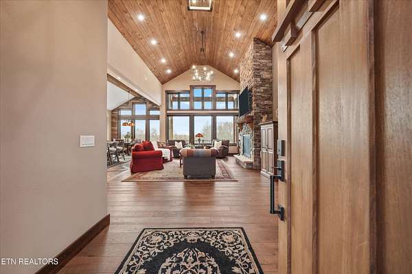 Set on 5.23 acres of rolling Tennessee landscape, this custom-built estate offers a rare blend of architectural craftsmanship, natural surroundings, and refined mountain-inspired design.