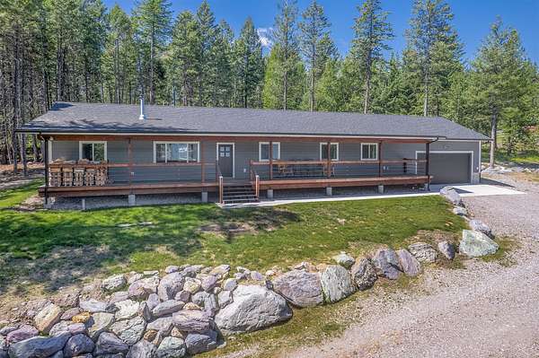 Exceptional value and move-in ready! Private, spacious, and positioned for possibility, this 2022-built 5BD/2BTH single level dream home offers the kind of freedom rarely found this close to Bigfork. Set on 4.88 acres with SAG-10 zoning, no CCRs, and no HOA, it provides room to create the Montana lifestyle you've imagined, whether that means bringing horses, expanding living space, or simply enjoying the peace and privacy of the setting as it is. Surrounded by trees with sweeping Swan Mountain and Swan River VIEWS, it feels like you're tucked deep in the woods, yet you're only minutes from Flathead Lake, Bigfork Village, dining, and year-round recreation. Cozy up by the wood stove in the winter and stay cool with crisp AC in the summer. A cleared building bench offers an easy path to a future guest home, a large shop, etc. Short-term rent with conditional use permit, adding even more flexibility. A rare blend of comfort, and opportunity in one of Montana's most sought-after locations.