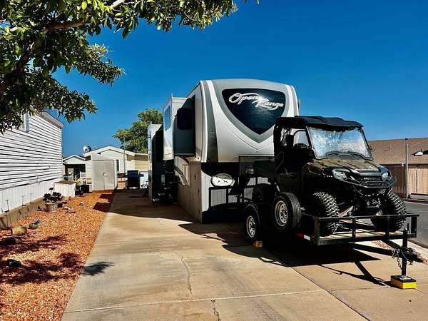 Est $1,102/moCome one come all and see this beautiful lot across from the pool and clubhouse. The lot is spacious with a lovely, decorated side yard. There is also a shed on the lot. Included in this purchase is a beautiful 2018 Open Range by Highland Fifth wheel . There are five slides, dual A.C., a double refrigerator, an island with a sink, king sized rear bed, step in shower, washer/dryer hookups, fireplace, vinyl planking, and a sliding hitch. Wait until you see the 60-inch TV and Comfy couches to curl up in. The recliners swivel. There is storage under the gooseneck. Buyer to verify all information. Private Remarks: