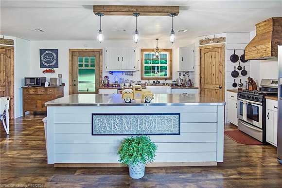 Stunning Country Farm Home with amazing amenities. Custom features throughout Sitting on a prestige 26.91 acres m/l laying tucked in the Ouachita Mountains. Open Concept with an amazing huge mud room which also leads to a huge safe room for storms and survival. There is a sewing room or hobbyroom and lots of storage make for your own she room Walk Into the Master chefs kinda of Kitchen including 2 huge walk in pantrys, Stainless steel Island Top, Country Wooden Counter tops, Gas Propane Stove with Gorgeous Wood Vent, Open up to the dining room and Huge Living room . Beautiful Brick wood fire place. Look out the front window to a remarkable stocked pond with a beautiful dock to feed or catch the fish. This home has the charm with the farm house bedrooms and country bathrooms .It is complete with light unique farm light fixtures and that amazing Kitchen Island.On the Property is a huge producing working garden spot , and a 20x10 Green House also a 21x18 Boat Shed, 21x18 Wood Shed, 30x15 Shop, and for your fresh farm eggs there is a spectacular chicken pen 16x16 with 8x8 laying house .This is a working cattle and vegetable farm .All this can be yours Dreams can come true on this Farm house Farm oh and don't forget an above ground salt pool,. All sides are fenced with a small creak running to the west of the property. Mountain views from the drive way.The peaceful setting will make not want to ever leave.