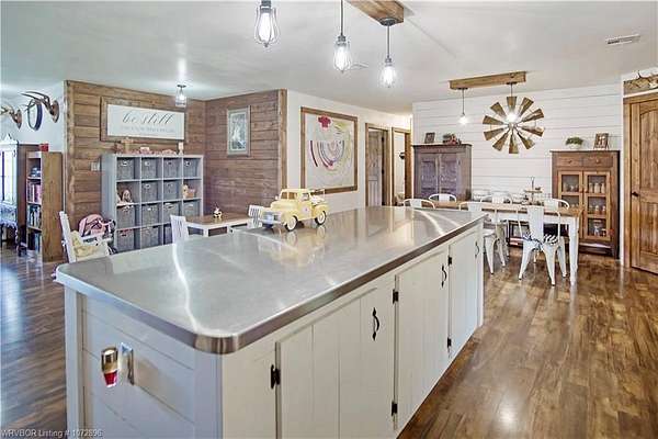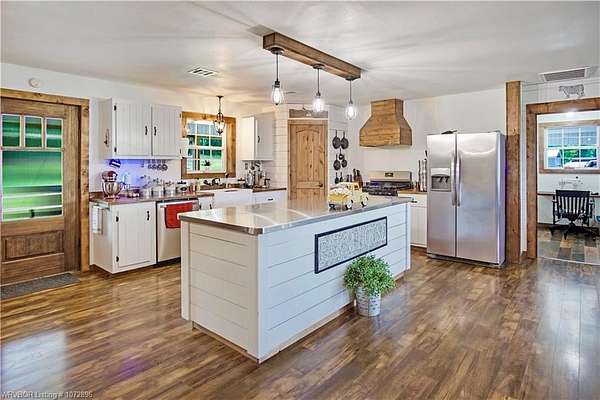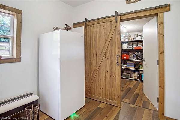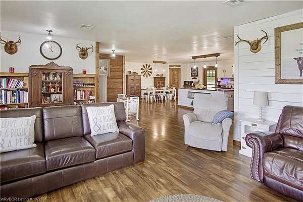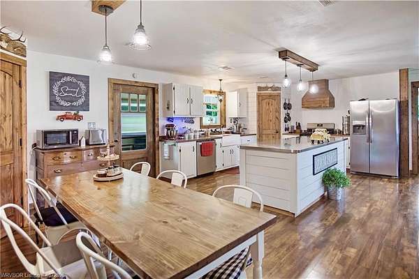 Stunning Country Farm Home with amazing amenities. Custom features throughout Sitting on a prestige 26.91 acres m/l laying tucked in the Ouachita Mountains. Open Concept with an amazing huge mud room which also leads to a huge safe room for storms and survival. There is a sewing room or hobbyroom and lots of storage make for your own she room Walk Into the Master chefs kinda of Kitchen including 2 huge walk in pantrys, Stainless steel Island Top, Country Wooden Counter tops, Gas Propane Stove with Gorgeous Wood Vent, Open up to the dining room and Huge Living room . Beautiful Brick wood fire place. Look out the front window to a remarkable stocked pond with a beautiful dock to feed or catch the fish. This home has the charm with the farm house bedrooms and country bathrooms .It is complete with light unique farm light fixtures and that amazing Kitchen Island.On the Property is a huge producing working garden spot , and a 20x10 Green House also a 21x18 Boat Shed, 21x18 Wood Shed, 30x15 Shop, and for your fresh farm eggs there is a spectacular chicken pen 16x16 with 8x8 laying house .This is a working cattle and vegetable farm .All this can be yours Dreams can come true on this Farm house Farm . All sides are fenced with a small creak running to the west of the property. Mountain views from the drive way.The peaceful setting will make not want to ever leave.