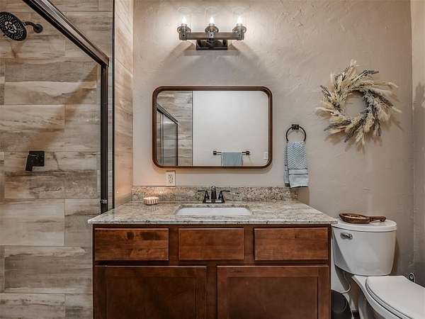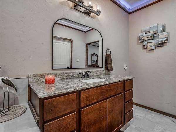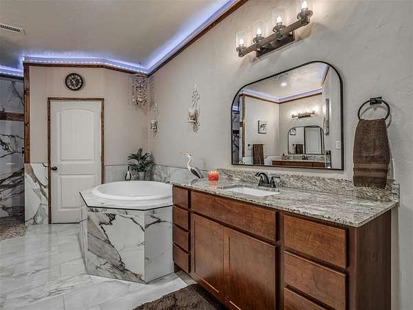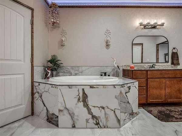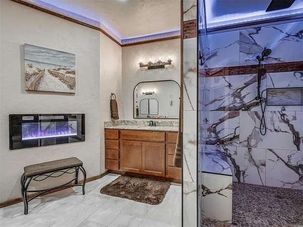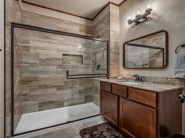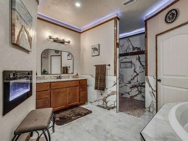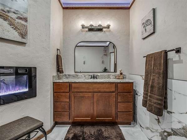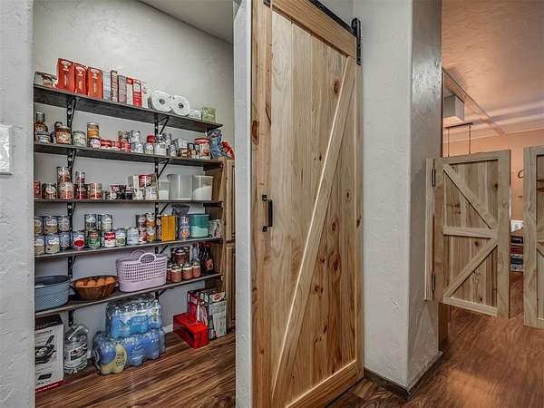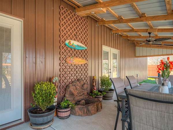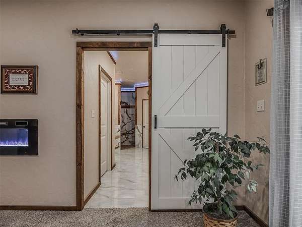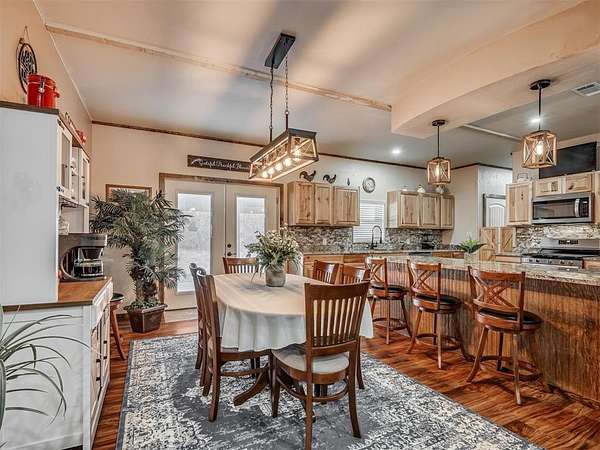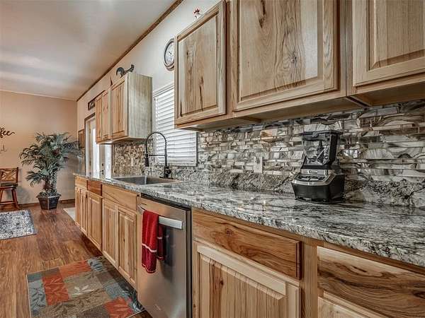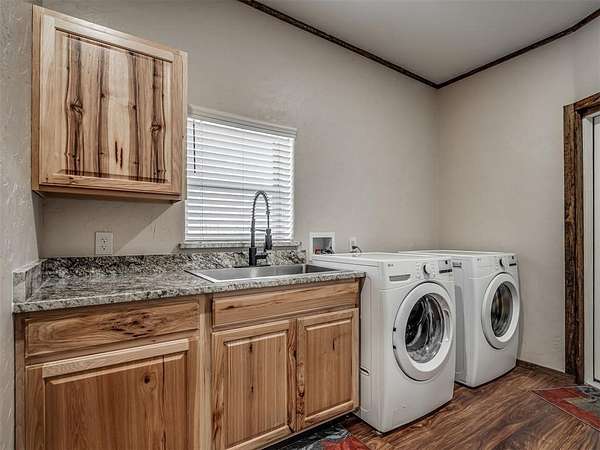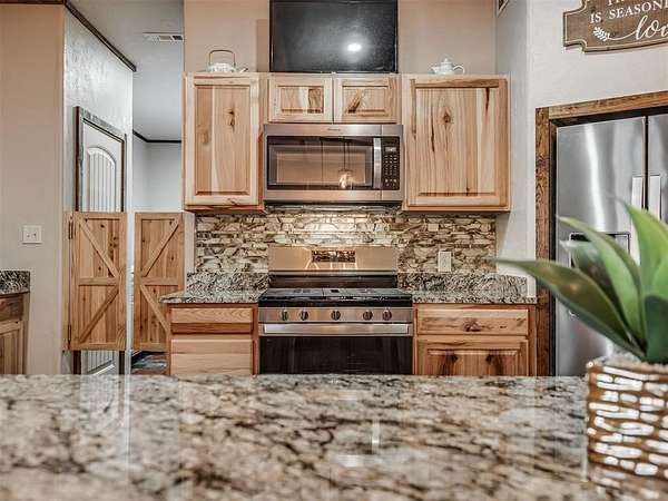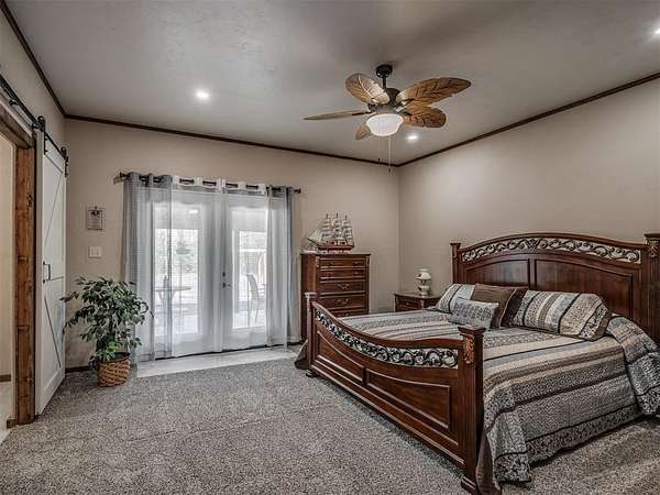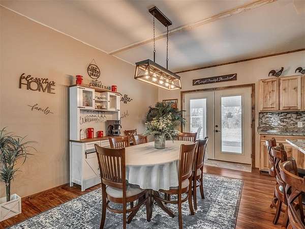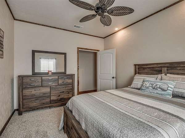 Located in a rural area of Okfuskee County and within the Bearden Public School district, this 18-acre property offers a blend of open and wooded terrain with functional improvements in place. The acreage is partially cleared around the home and barn, with the remaining land in timber. Graded topography provides usable ground suitable for livestock, recreation, or additional improvements. The 2924 SF home features an open-concept layout with 3 bedrooms and 2 bathrooms. Interior amenities include a wood-burning fireplace, large walk-in pantry, generous closets, and upgraded finishes throughout. The primary suite includes a spa-style bath with enhanced fixtures and finishes. Outdoor living space is supported by a 10' x 30' covered front porch and a 12' x 40' covered rear porch. The rear porch is plumbed and prepped for the addition of a spa. Additional improvements include a barn, multiple storage buildings, two ponds, and a gated entrance. Property features an in-ground storm shelter, cistern for water collection, and is wired and prepared for generator installation. Suitable for buyers seeking a rural residence with acreage, agricultural potential, and modern construction. Buyer to verify all information.
