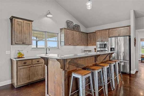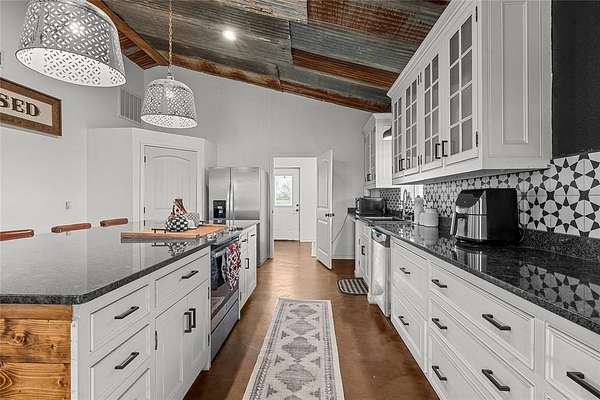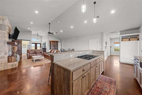 - Built-In Features, Granite Counters, High Speed Internet Available, In-Law Suite Floorplan, Kitchen Island, Natural Woodwork, Open Floorplan, Pantry, Vaulted Ceiling(s)