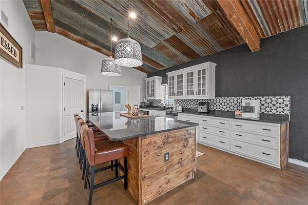 Main House Features: Open-concept living spaces are accentuated by rustic design elements. The beautiful fireplace, is perfect for chilly evenings and creating a welcoming ambiance. Spacious bedrooms with ample natural light and high-end accents. Well-appointed 3 bathrooms, including a half bath for guest convenience. Mudroom for practical and stylish entry. Workshop for the DIY enthusiast or creative mind. Carports at both the front and back of the 2000 sq ft workshop, provide covered parking and additional storage space. Guest House Highlights include: bedroom oasis with rustic charm and comfort, 1.5 baths, offering convenience and privacy, Charming boho chic fixtures and materials.