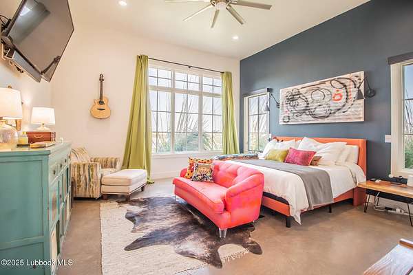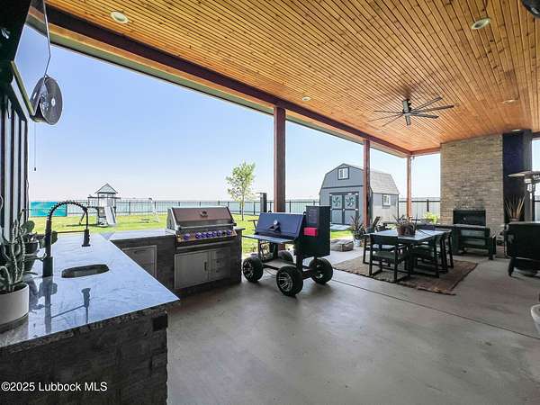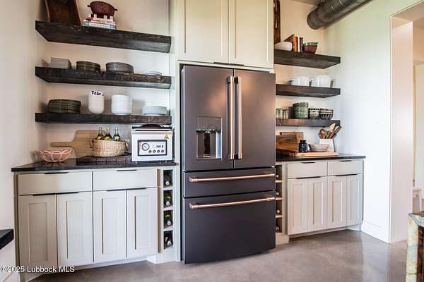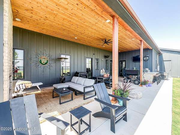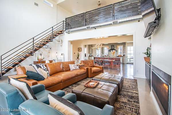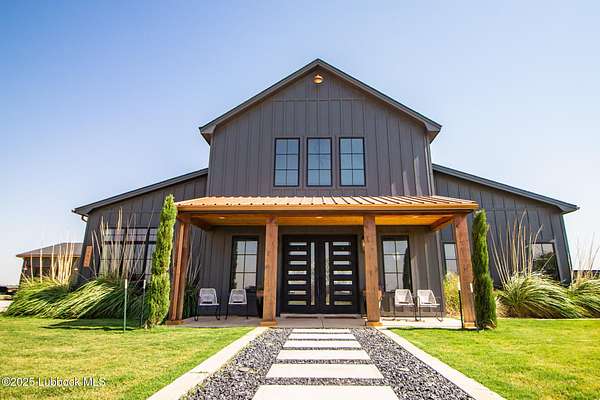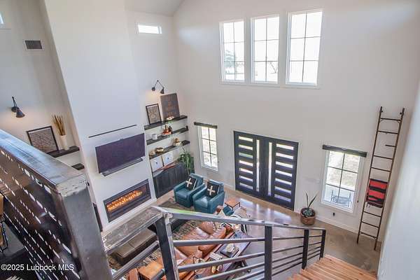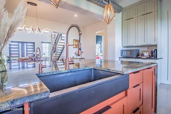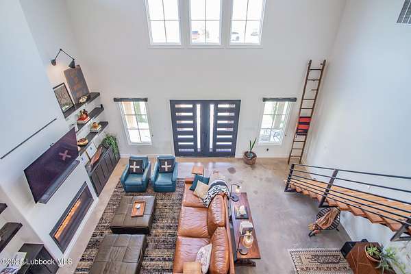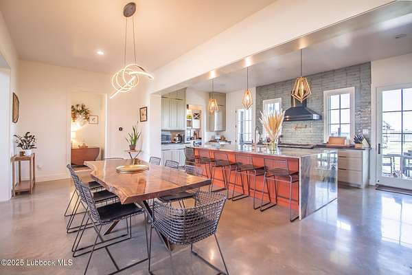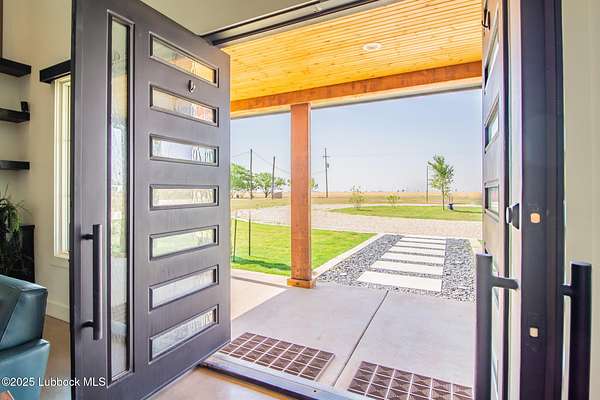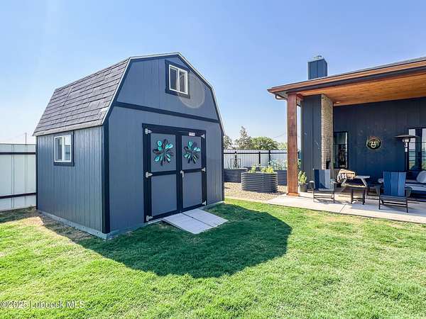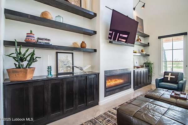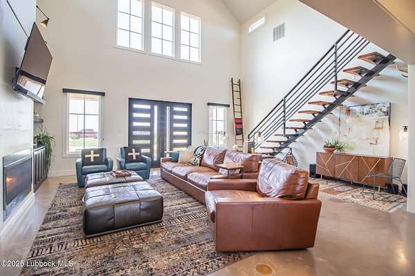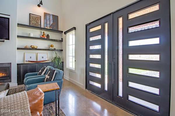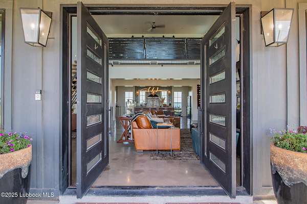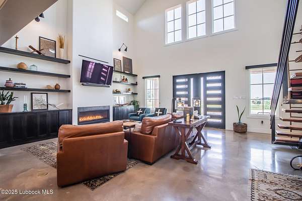 This stunning custom home is a masterclass in design & detail, set on 4 lush acres with no deed restrictions. Enter through dramatic double pivot doors into a breathtaking open-concept living area with soaring 28-ft ceilings, gas fireplace, & Pella windows. The kitchen is a true showpiece-Brazilian quartzite waterfall island, luxury appliances, custom cabinetry, open shelving, walk-in pantry, coffee bar, & a full wet bar with wine fridge & ice machine. Copper accents add warmth & elegance throughout. A private master suite offers resort-style luxury with a spa-inspired bath featuring a wraparound tile wet room, soaking tub, dual shower heads, double vanities, & a spacious walk-in closet. Two additional bedrooms share a beautifully designed bath, while a loft upstairs adds a studio, full bath, & views of the living space below via a custom steel bannister. Outdoor living shines with a brick gas fireplace, kitchen, expansive irrigated lawn, & raised garden beds. A 3-car pull-thru garage, circle drive, & full foam insulation complete this exceptional property where every detail has been thoughtfully curated.
