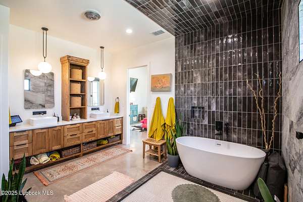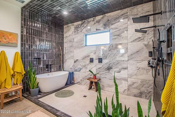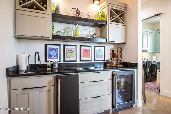 - Bar, Bookcases, Breakfast Bar, Built-In Features, Ceiling Fan(s), Chandelier, Double Vanity, High Ceilings, Kitchen Island, Open Floorplan, Pantry, Primary Downstairs, Quartz Counters, Recessed Lighting, Soaking Tub, Vaulted Ceiling(s), Walk-In Closet(s), Wet Bar