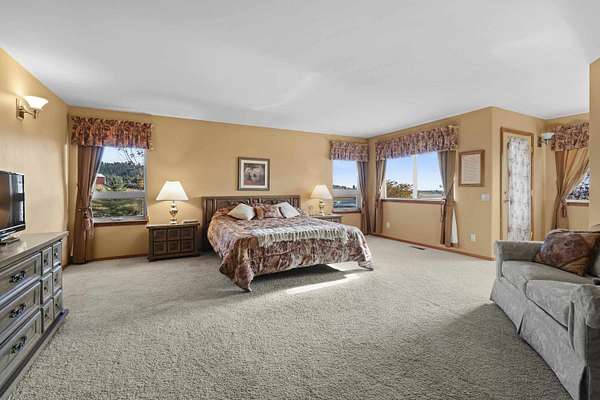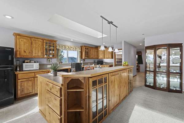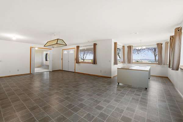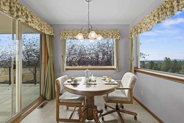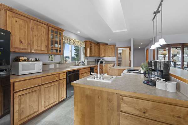 Spacious rancher on 5.46 acres with 6,080 sq ft in the main home plus a 512 sq ft 1 bed/.75 bath apartment with its own laundry. Main floor offers 3 beds, 2.5 baths, office, and laundry; daylight walkout basement includes 1 bed, 1.5 baths, bonus room, kitchenette, and separate laundry. Large kitchen with island, pantry, and all appliances. Primary suite features walk-in closet, garden tub, and double sinks. 4-car extra deep attached garage plus RV parking with dump/connection. Heated/insulated 64x40 shop with 20x40 workshop, 16x40 lean-to, 12' door, and air compressor. Grounds include fenced 40x20 garden with drip system, 8x16 shed with sink, fruit trees, koi pond, pergola, and water feature. Covered front porch and back deck capture stunning southwest views. Zonal heating, central A/C, 2 hot water tanks, sprinkler system, central vac, and 400 amp service. Well, septic, Avista gas, and garbage service. Freeman School District. Built in 2001.