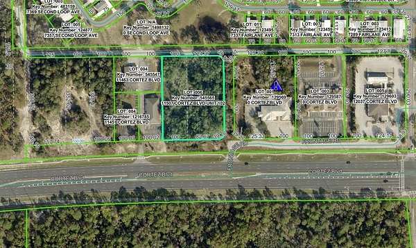 Commercial Vacant Land (1.94 Acres MOL) Zoned C-2 facing Cortez Blvd (Highway 50) with Direct Access in front of the property. This Property is 1/2 mile from the entrance to Oak Hill Hospital. The Property has a service road in front that has an entrance to Cortez Blvd (Highway 50) and an alley way at the rear of the Property that also leads to Oak Hill Hospital. Property has had a conceptual review with Hernando County Planning, showing three (3) 5000 sq. ft. and one (1) 340 sq. ft. buildings that would fit and be used as Medical or Office Professional. All needed utilities are at the property line.