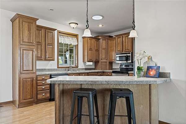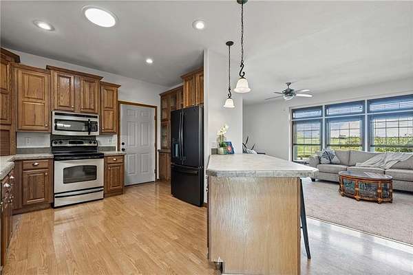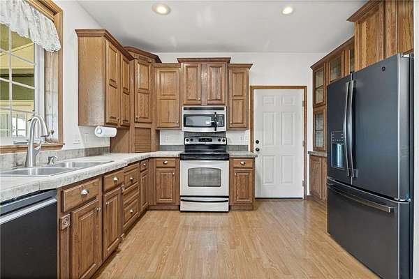 Back on the market and ready for its next chapter! Don't miss your opportunity for peaceful country living-just minutes from Lawrence, De Soto, and the KC metro. This 3/2 ranch home on 5.08 acres offers one-level living with zero-entry access, a welcoming layout, and a three-season room overlooking the countryside. Enjoy privacy with wooded buffers, space for gardening or hobbies, and sunsets from the back of the property. The attached garage leads to a basement for storage, storm shelter, or finish potential. Well water on site. Measurements approximate; buyer to verify.