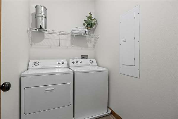 - Dishwasher, Dryer, Electric Range, Refrigerator, Stainless Steel Appliance(s), Washer
