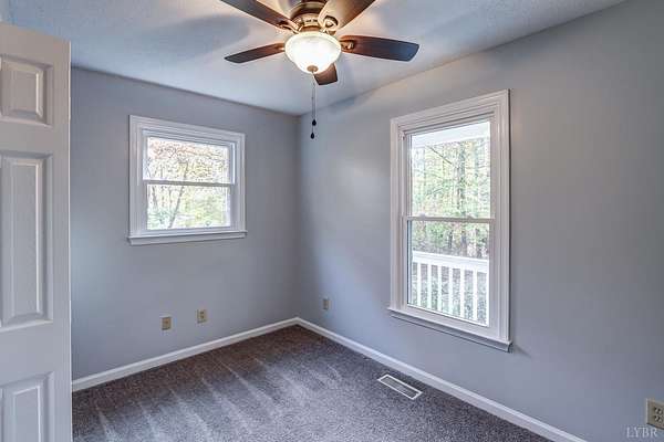 This beautifully maintained home in Campbell County offers spacious living with 4 bedrooms and 3 full baths, nestled on a generous 1.84-acre lot. The main floor features a primary suite complete with a private bath and a walk-in closet, providing comfort and convenience. Freshly painted throughout, the home boasts an open-concept kitchen, dining, and living area perfect for entertaining. The large family room includes a cozy fireplace, creating a warm and inviting atmosphere. Step outside to enjoy both a screened deck and an open deck area, ideal for gatherings or quiet evenings. Conveniently located near Liberty University, the mall, and Brookville schools, this property blends comfort and style in a serene setting.