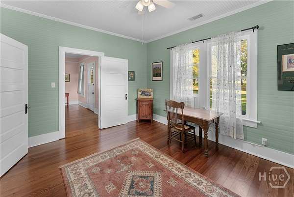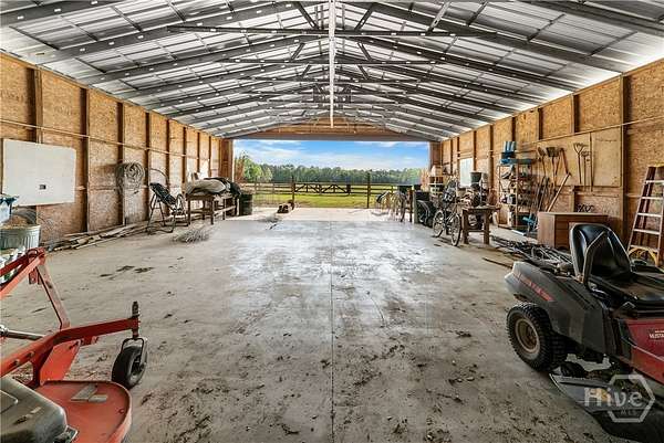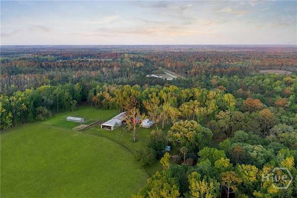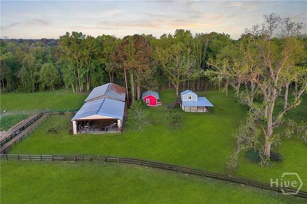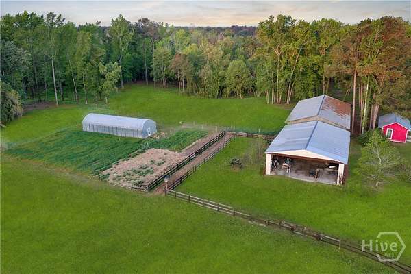 Welcome to a rare opportunity in Effingham County, 38.59 acres of private, sustainably managed land offering more than just a home. This unique property blends a traditional homestead with strong income-generating potential. Framed by magnificent live oaks and towering pines, it features a fully fenced 19-acre pasture, a 20x60 greenhouse, and an established garden maintained with regenerative practices. Mature fruit trees and a muscadine vineyard complete an ideal setup for sustainable living, with room to expand into a "farmcation" or agritourism destination. Designed for growth and flexible agricultural use, the property includes a heavy-duty well and pump delivering strong water pressure to an extensive pop-up sprinkler system, along with multiple water lines throughout. At its heart is a charming 1935 farmhouse rich in character, showcasing beautiful pine floors, timeless craftsmanship, and multiple porches perfect for enjoying the surrounding natural landscape and thriving ecosystem. Income potential is immediate with two studio apartments in a renovated tobacco barn, ideal for short-term rentals, guest stays, income or multigenerational living. Additional features include a 40x80 pole barn, a dedicated goat house and pen, and untouched wooded areas abundant with wildlife, perfect for hunting. A versatile metal structure with a concrete slab, water, and electricity is ready to be transformed into a horse barn, grow space, commercial kitchen, yoga studio, or more. For those seeking something truly distinctive, the property also includes a large metal airplane hangar adjacent to the pasture, doubling as a private runway-opening the door to a one-of-a-kind lifestyle or niche investment. Whether you envision a private homestead, a working farm, or a multi-income destination property, this land offers the infrastructure, flexibility, and vision to bring it to life. This isn't just property-it's a lifestyle, a business opportunity, and a legacy in one.