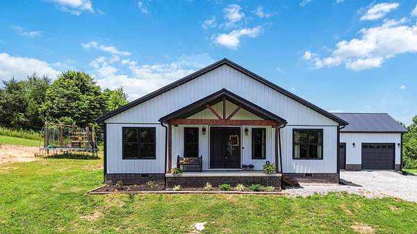 Welcome to your dream life in the heart of Kentucky. Nestled in the picturesque, rolling hills of Central Kentucky, this stunning modern farmhouse sets on 37 sprawling acres of farmland with perfect hunting ground, this home offers the perfect balance of country and luxurious living. Step inside and be greeted by airy vaulted ceilings and a warm, open-concept living area anchored by a cozy gas fireplace, ideal for both everyday living and entertaining. The chef-inspired kitchen is a dream, featuring a farmhouse sink, pot filler, granite countertops, walk-in pantry, and beautiful cabinetry that blends style with functionality. Enjoy gorgeous farm views from your front and back porch and unwind in the master suite, complete with a spa-like bathroom featuring his-and-her vanities, a walk-in tile shower, and a freestanding, soaking tub. The suite flows seamlessly into a massive walk-in closet and laundry room, creating the ultimate retreat. Private, beautiful country setting with abundant wildlife and located just 10 minutes from Stanford, and only 25 minutes from Danville and Somerset. This is more than a home, it's a lifestyle. Properties like this are rare and move quickly!