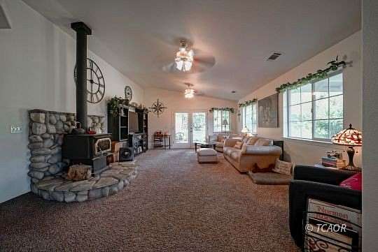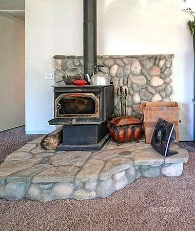 - Solid Surface/Corian Linoleum/Vinyl, Countertops Laminate, Flooring Carpet, Flooring Vaulted Ceilings, Walk-In Closet(s), Ceiling Fan(s), Wood Stove, Flooring