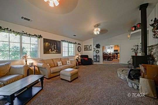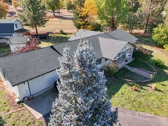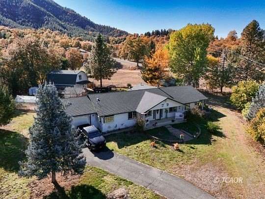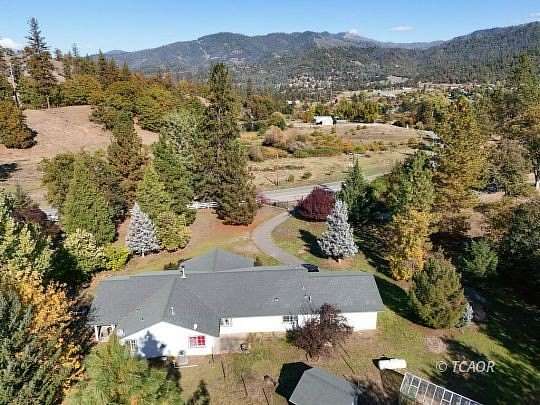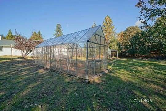Home with attached garage and a covered covered patio from living room french doors. Barn/garage/shop, gazebo, greenhouse and storage building; ready for comfortable country living for humans, critters, and green thumb enthusiasts. The home was built in 2001; with a fresh coat of exterior paint October 2025. Re roof of main home and barn carport 1-2026. New Septic tank fall of 2025. The inviting entry opens to a large living room (with patio access) on one side and a spacious dining / area on the other, providing a nice flow for everyday living and entertaining. Popular ' split floorplan: Primary Suite on one side of the home; remainder on the other. Two bedrooms feature walk in closets. An Office is in addition to the 3 bedrooms. Front entry to the home is graced with a spacious, covered concrete patio. Well was tested in October, with a consistent 15 GPM for the entire four-hour test. Fully fenced grounds, with a gate at the entry. Conveniently located for EZ travel to Redding, Weaverville, Lakes , and River.