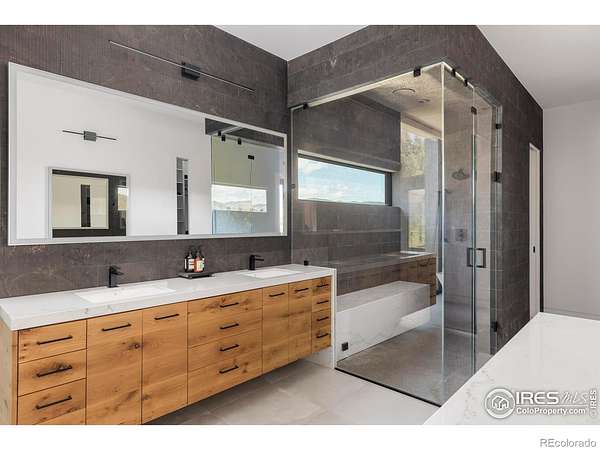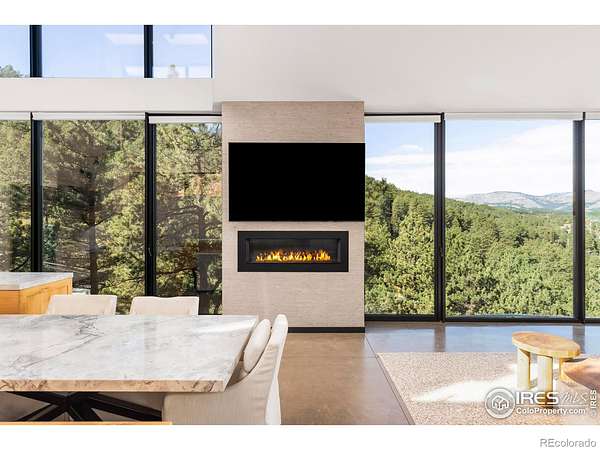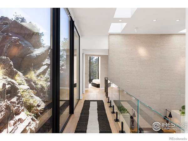 Nestled into the sandstone cliffs of Pine Brook Hills and offered for the first time since construction, 1151 Timber Lane is a bold architectural statement fusing modern design with Colorado's natural beauty. Conceived by Adam Oklesh Architects, this 5-bedroom, 5-bathroom residence captures panoramic east and west views while offering exceptional privacy and outdoor amenities. Set on 2.44 acres, the 4,348-square-foot home features soaring ceilings, floor-to-ceiling windows, and sophisticated natural finishes including rift-sawn white oak and stone. Radiant floor heating and energy-efficient, fire-rated materials ensure long-term comfort and resilience. The great room, anchored by a sleek fireplace, flows into the chef's kitchen with vaulted ceilings, luxury appliances, striking marble island, and breakfast nook connecting to the dining area. The private wing includes a luxurious primary suite with spa-like bath and walk-in closet, two additional en-suite bedrooms, and a flexible fourth bedroom or office. A fifth bedroom suite offers ideal guest or studio space. Expansive sliding glass doors lead to two outdoor sanctuaries. The main terrace features a fire pit, built-in grill and outdoor kitchen, oversized bar seating, outdoor heaters, and a dramatic infinity-edge pool floating above Boulder valley. The west-facing flat yard offers a sunlit retreat surrounded by rock outcroppings, mature trees, and custom Marpa landscaping. The rooftop deck provides unforgettable sunrises, sunsets, and stargazing with views stretching from the Flatirons to city lights and the Continental Divide. Additional features include an attached 2-car garage with generous storage and elevator access throughout. Experience Boulder living at its finest; luxurious interiors, architectural significance, unmatched outdoor spaces, and jaw-dropping 360-degree views in a one-of-a-kind retreat just 6 minutes from Broadway and 12 minutes from downtown Boulder.