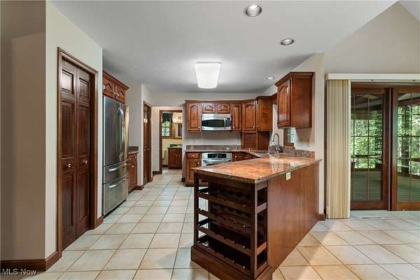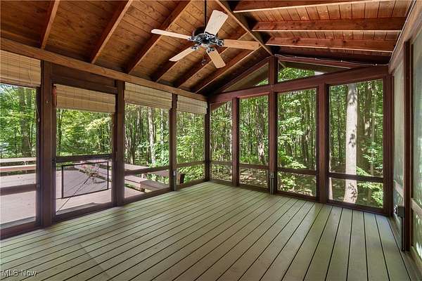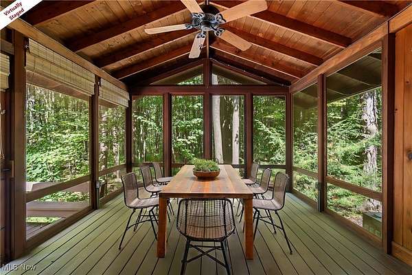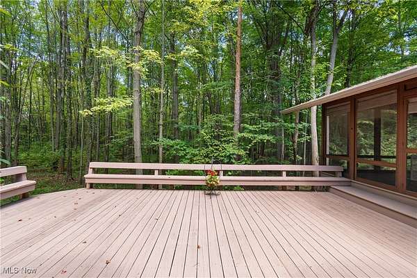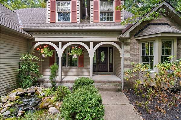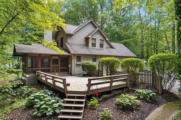 Welcome to 11510 Robin Wood Ln, a stunning Cape Cod retreat nestled on 3.5 private acres in the award-winning Kenston School District. This thoughtfully designed 4-bedroom, 2.5-bath home offers 2,665 sq. ft. above grade plus an additional 1,100 sq. ft. of finished lower-level living space, blending architectural character with modern updates. Step inside to a two-story foyer that opens to a soaring cathedral-ceiling living room with a wall of windows showcasing breathtaking wooded views. A double-sided glass fireplace connects the living room and chef's kitchen, where you'll find granite countertops, stainless steel appliances, and a vaulted eat-in area that flows seamlessly to a cedar-lined screened porch and deck-the perfect place to relax among the trees and wildlife. The first-floor owner's suite is a private sanctuary, complete with a walk-in closet, spa-like bath, backyard views, and a spiral staircase leading to a lofted bonus space ideal for an office, sitting room, or retreat. Three additional bedrooms and a skylit loft upstairs provide comfort and flexibility for family or guests. The lower level is built for entertaining with a spacious recreation area and bar. Solid wood doors, custom trim, and architectural details give every room a sense of warmth and distinction. Outside, enjoy a true nature's paradise with mature landscaping, perennials, and even a front waterfall feature. A 16x20 heated pole barn with loft storage, 3-car garage, geothermal heating and cooling, 32kW whole-house generator, and recent updates including a new water treatment system (2024) and hot water tank (2025) ensure convenience and efficiency. Located just minutes from downtown Chagrin Falls and with easy access to the Cleveland metro area, this home offers a rare combination of privacy, natural beauty, and modern comfort. Discover the lifestyle you've been waiting for-schedule your showing today.