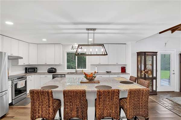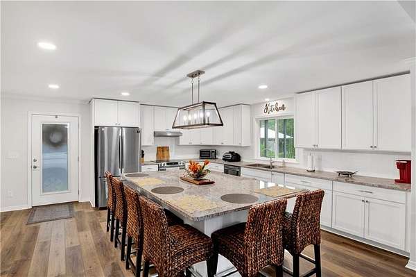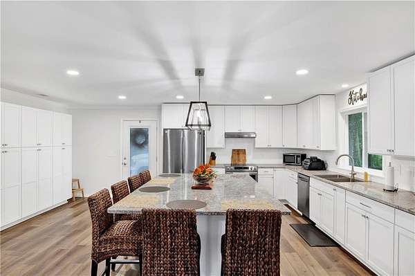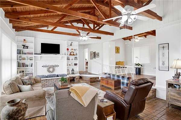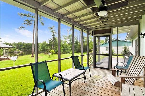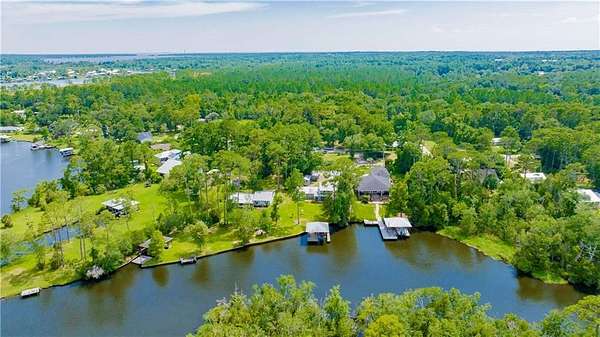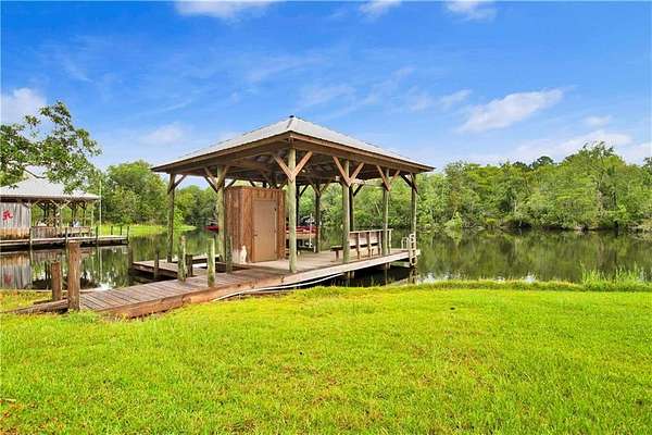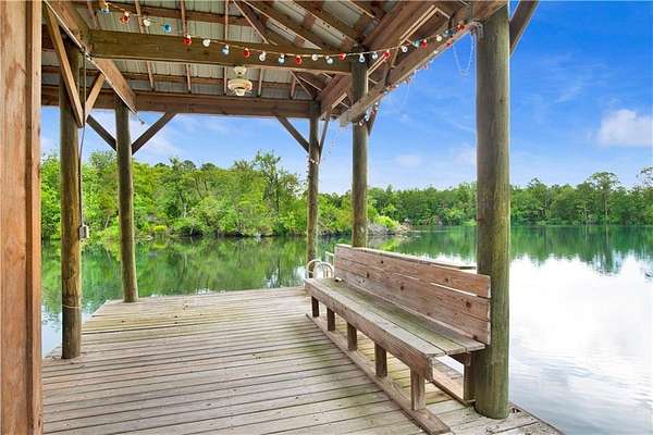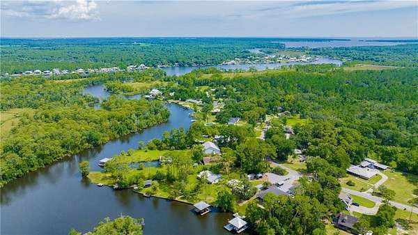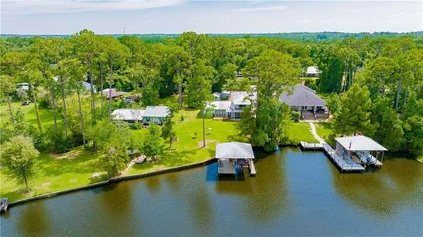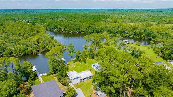 Approximately 1/2 acre river front home on Waterhole Branch, across from undeveloped acreage protected by the state. Just a 5 minute boat ride to Fish River & Weeks Bay. The raised foyer provides direct views of the river upon entering the home. Step down into the living room with solid brick floors, exposed rafters, built in shelving and a decorative hearth. The open floor plan leads into recently updated bright kitchen, with pretty cabinets and lighting. Plenty of counterspace and storage and a massive 8x5 kitchen island, all on new LVP flooring. Downstairs half bath was enlarged for easier handicapped usage, or extra room for future shower/tub installation. Two other bedrooms and full bath downstairs, with one bedroom currently used as an office. Graciously sized primary suite upstairs with walkthrough closet and fantastic river views from the metal roof balcony. A screened porch and open deck are downstairs, both with river views. The covered boathouse has electricity and boat lift. Bulkhead was repaired approx 2 years ago. Large 40 x 15 outbuilding with AC unit could be used as workshop, office or hobby room. Second outbuilding can be used as covered parking. Lot is partially fenced. No HOA but elective $25 annual fee to utilize community boat launch. All updates per owner. Buyer to verify all information during due diligence.