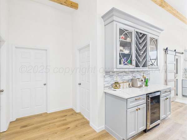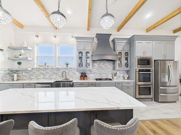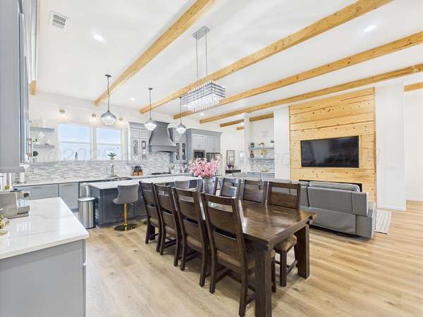 Stunning 2022 barndo on +/-5 acres-bring animals, toys, and businesses. This 3BD/3BA + office home blends Big City-Class style with open-country freedom. Huge bedrooms, great closets, and an elegant open kitchen/living/dining space with large island, coffee bar, propane stove, and an amazing butler's pantry. Massive garage/shop fits up to 4 cars with cabinets and sink-perfect for projects or parties. Enjoy quiet starlit nights from the covered patio overlooking the fenced yard. The luxe primary suite features a soaking tub, oversized shower, double vanities, and a true shopper's closet. Close to golf and dining but with peaceful country living.