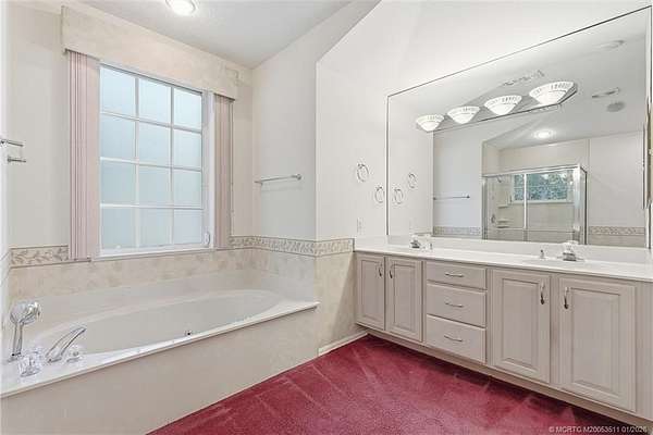 - Bathtub, Dual Sinks, Fireplace, Jetted Tub, Living Dining Room, Primary Downstairs, Separate Shower, Split Bedrooms