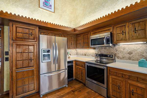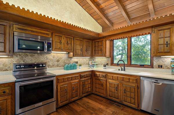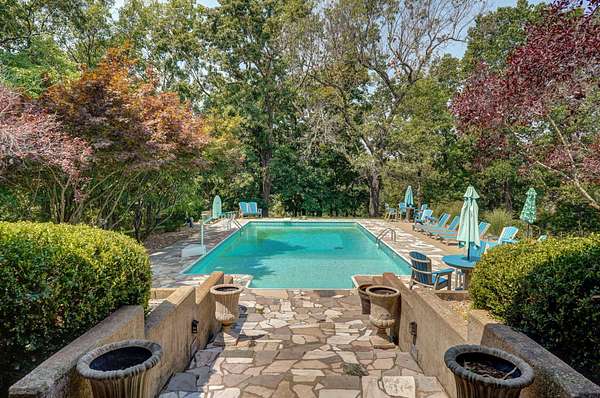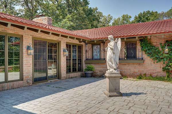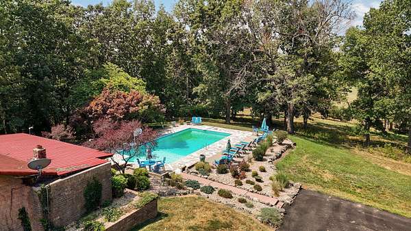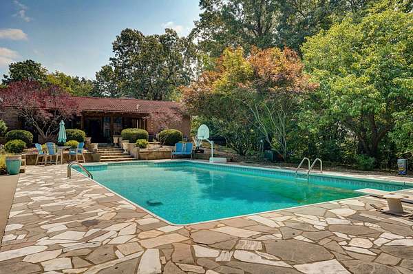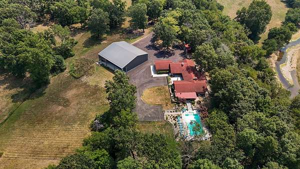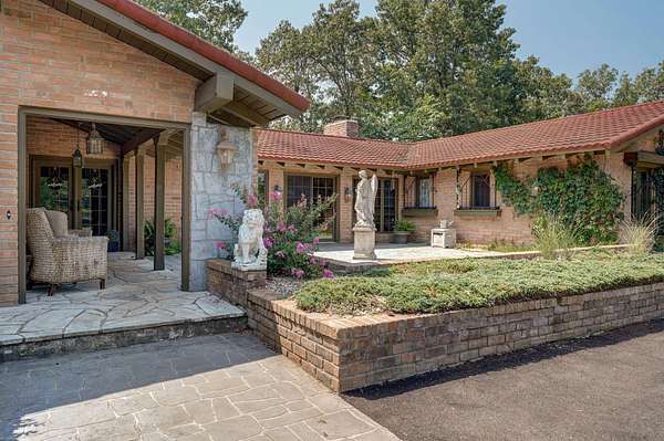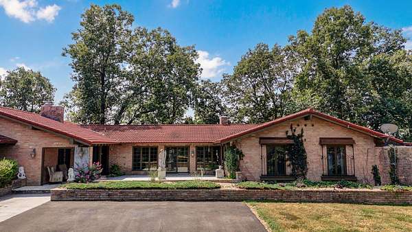 Behind a private gated entry, a long tree-lined drive leads to this distinguished residence -- a rare bluff-top retreat that has been held in the same family since 1975. Set on 10 acres, the property combines enduring elegance with modern comforts, offering both privacy and sophistication.The home's architecture is rich in character, with warm brickwork, graceful lines, and thoughtful details throughout. Expansive windows frame serene views of the surrounding landscape, while multiple outdoor living spaces invite seamless entertaining.At the heart of the estate lies a resort-style pool, surrounded by stone terraces, manicured gardens, and shaded lounge areas -- a perfect backdrop for gatherings or quiet relaxation.For those who appreciate versatility, the property includes a substantial heated and cooled shop, ideal for car collectors, creative pursuits, sports enthusiast, or executive-level storage.Perched above Williams Creek, this estate offers an unmatched combination of natural beauty, history, and refined living. An extraordinary opportunity to own a legacy property in an exceptional location.