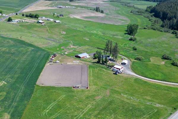 3 Parcels on nearly 60 acres in Peone Prairie, this versatile estate offers a fully upgraded 3-bed, 2-bath home plus a 3 bed 1 bath 1600sqft ADU. Main home has a new roof, siding, paint, HVAC, and front and back decks, additionally you'll enjoy the hot tub, lush lawn, and beautiful landscaping. The property features a charming silo, firepit and patio, ideal for weddings or large events, with parking for hundreds. A separate 2-bed guest house includes a spacious bath with clawfoot tub, loft, front and back patios-perfect as a rental or caretaker's quarters. The complete equine facility includes a 50x70 4-stall barn with tack room (more stalls can be added), multiple horse pens and runs, and a 200x300 arena with roping boxes and a dedicated calf lane. Water and power are available throughout. A 30x40 shop with loft! Proven income potential from events, horse operations, hay production and Airbnb! Come check it out and make this incredible property you home!