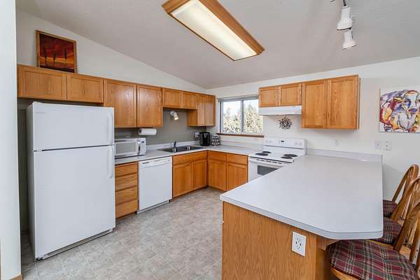 - Breakfast Bar, Ceiling Fan(s), Fiberglass Stall Shower, Laminate Counters, Primary Downstairs, Shower/Tub Combo, Vaulted Ceiling(s), Walk-In Closet(s)